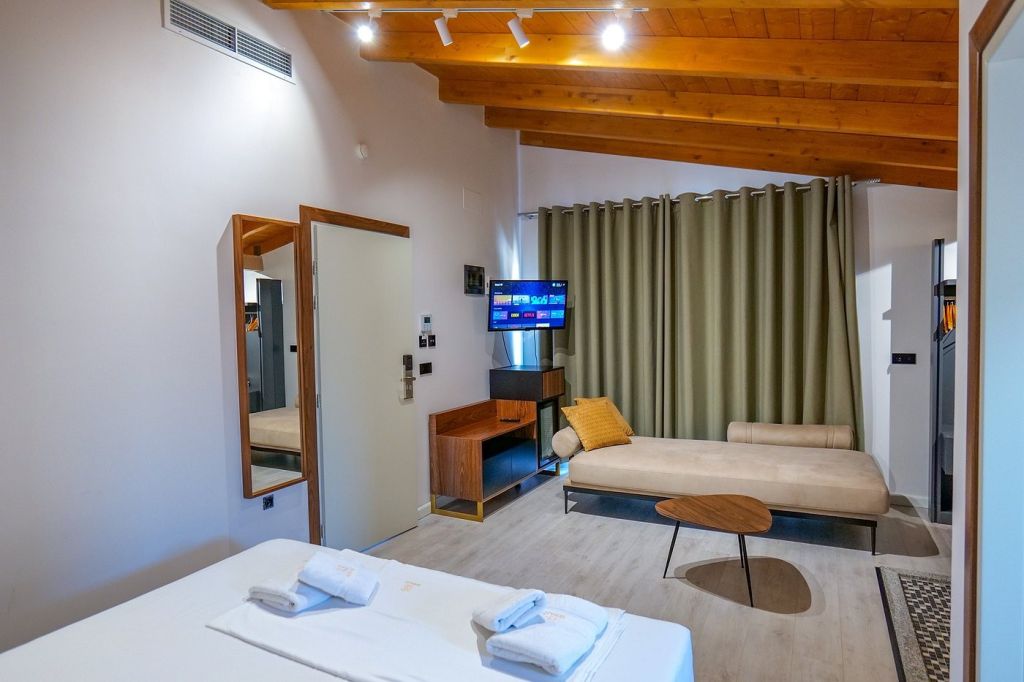 Camerele de la Semajo Hotel sunt concepute pentru a asigura confortul oaspeților pe durata întregii vacanțe. Indiferent de tipul de cameră ales, toate unitățile de cazare beneficiază de un set complet de dotări moderne. Fiecare cameră dispune de aer condiționat, esențial în verile călduroase ale litoralului albanez, precum și de WiFi gratuit pentru a rămâne conectat oricând. TV cu ecran plat prin cablu, minibar și fier de călcat completează confortul zilnic, în timp ce terasa sau balconul propriu oferă un spațiu personal de relaxare. Băile sunt dotate cu duș sau cadă (în funcție de tipul camerei), precum și uscător de păr. Combinația dintre dotările practice și spațiile exterioare private face din fiecare cameră un refugiu plăcut după o zi petrecută la plajă sau în explorarea orașului.