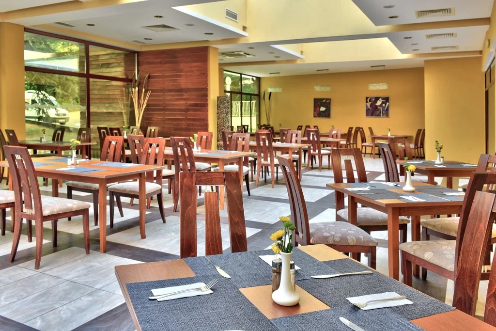 Camera Dublă cu Ușă de Legătură – disponibilă în 3 unități, cu vedere la parc, capacitate maximă 2+2 persoane. Ideală pentru familii sau grupuri mici, această configurație oferă flexibilitate și intimitate simultane. Dotările sunt similare camerelor duble standard.