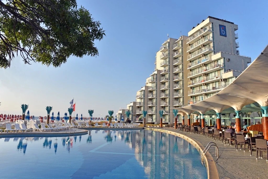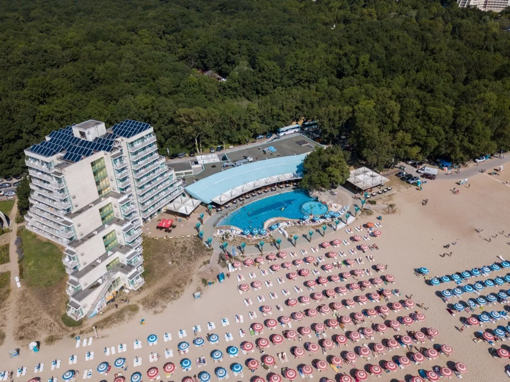 Hotel Boryana este o alegere de 4 stele situată direct pe plaja de nisip fin din stațiunea Albena, una dintre cele mai apreciate destinații de pe litoralul bulgăresc al Mării Negre. Renovat în 2014, hotelul îmbină confortul modern cu accesul imediat la mare, oferind turiștilor o experiență completă în regim All Inclusive. Cu 10 etaje, trei lifturi și o capacitate generoasă, Hotel Boryana este ideal atât pentru familiile cu copii, cât și pentru cuplurile care caută o vacanță relaxantă și bine organizată.