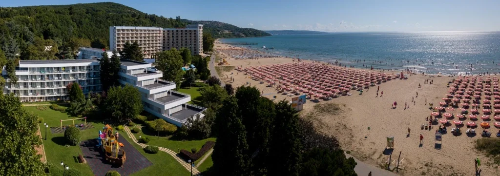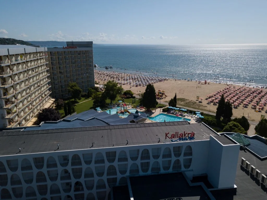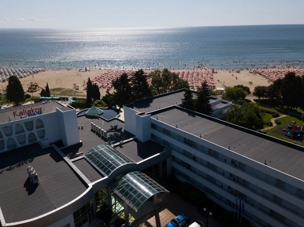 Kaliakra Mare este un hotel de 4 stele din stațiunea Albena, Bulgaria, perfect poziționat direct pe plajă, la doar 100 de metri de centrul stațiunii. Cu o arhitectură distribuită în trei clădiri elegante și un regim Ultra All Inclusive generos, hotelul oferă o experiență de vacanță completă și relaxantă, potrivită atât pentru familii cu copii, cât și pentru cupluri care caută confort și distracție la malul Mării Negre.