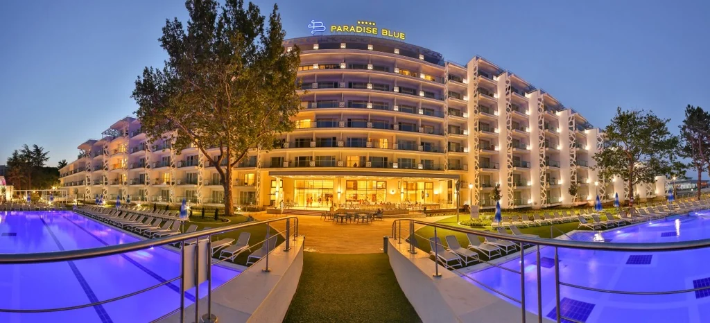Maritim Hotel Paradise Blue Albena este o bijuterie de 5 stele inaugurată în 2016/2017, care redefinește standardele de lux în celebra stațiune bulgărească Albena. Amplasat la doar 30 de metri de plajă, acest hotel modern cu 9 etaje oferă o experiență premium completă, de la camere elegante cu mobilier de designer până la facilități spa de nivel înalt. Este alegerea perfectă pentru cupluri, familii cu copii și călători exigenți care nu fac compromisuri în materie de confort și servicii.