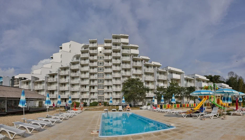 Hotel Mura din Albena este o alegere de 4 stele care combina confortul modern cu pozitia sa privilegiata direct pe plaja, oferind turistilor un sejur complet in una dintre cele mai apreciate statiuni de pe litoralul bulgar. Renovat in 2020, hotelul impresionaza prin spatiile sale generoase, diversitatea optiunilor de cazare si pachetul all inclusive bine structurat. Este destinatia ideala pentru familii cu copii, dar si pentru cupluri care cauta relaxare totala intr-un cadru elegant si bine organizat.