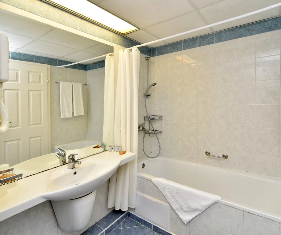 Camera Dublă cu vedere la parc – 15 m², capacitate maximă 2 persoane, configurată cu două paturi de o persoană și un fotoliu extensibil, aer condiționat individual, televiziune prin cablu, minibar (contra cost), telefon, Wi-Fi gratuit, baie cu duș sau cadă (la cerere), uscător de păr, balcon, fier de călcat și masă de călcat la cerere. O opțiune mai accesibilă ca preț, ideală pentru cei care petrec cea mai mare parte a timpului pe plajă sau la piscină.