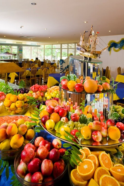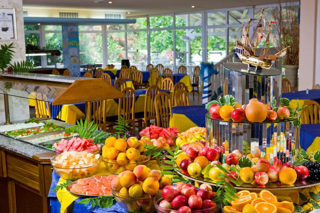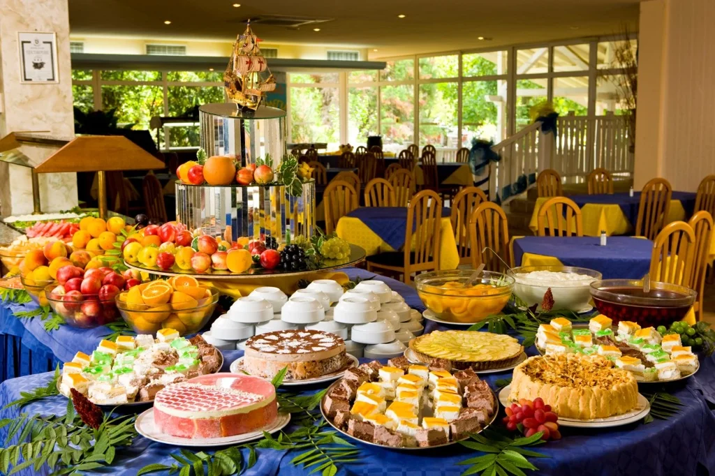 Pachetul All Inclusive de la Hotel Oasis Albena acoperă toate mesele principale și băuturile locale pe parcursul zilei. Micul dejun se servește în formula bufet între orele 7:30 și 10:00, prânzul tip bufet între 12:30 și 14:30, iar cina tip bufet între 18:00 și 21:00. O masă intermediară (snack bar) este disponibilă zilnic între orele 15:00 și 17:00, inclusiv înghețată la snack bar și în restaurantul principal în timpul meselor. În perioada 1 iulie – 31 august, hotelul organizează seri cu grătar 6 zile pe săptămână și cine tematice de două ori pe săptămână, aducând varietate și atmosferă în fiecare seară. Băuturile locale sunt incluse la barul din hol între orele 10:00 și 23:00 și la barul de la piscină între 10:00 și 22:00. Băuturile internaționale nu sunt incluse în pachet. Un beneficiu special: turiștii cu un sejur de minimum 7 nopți în perioadele de până la 30 iunie și după 2 septembrie primesc gratuit un prânz și o cină la un restaurant à la carte din complex, cu rezervare prealabilă până la ora 15:00 în ziua precedentă.