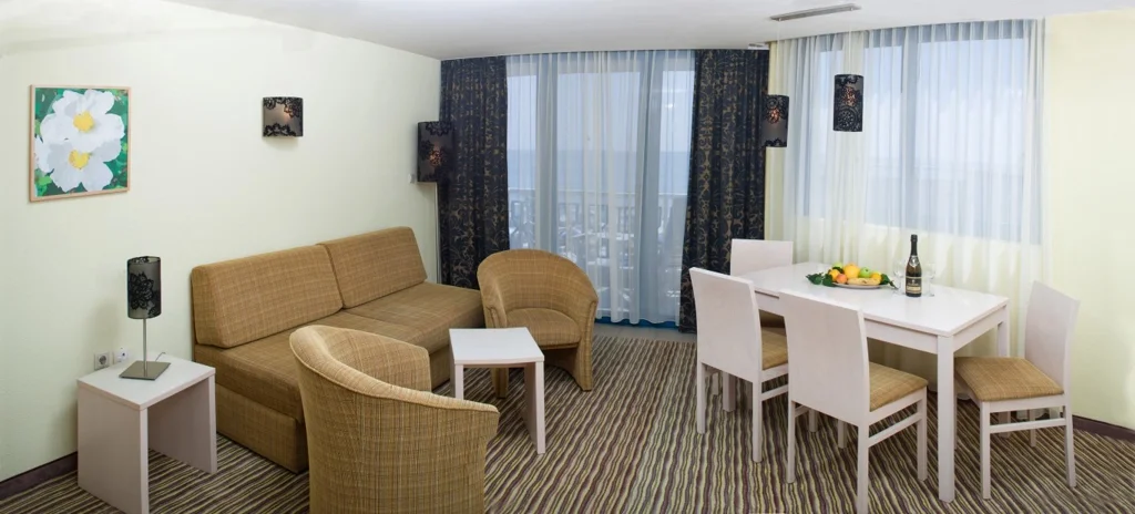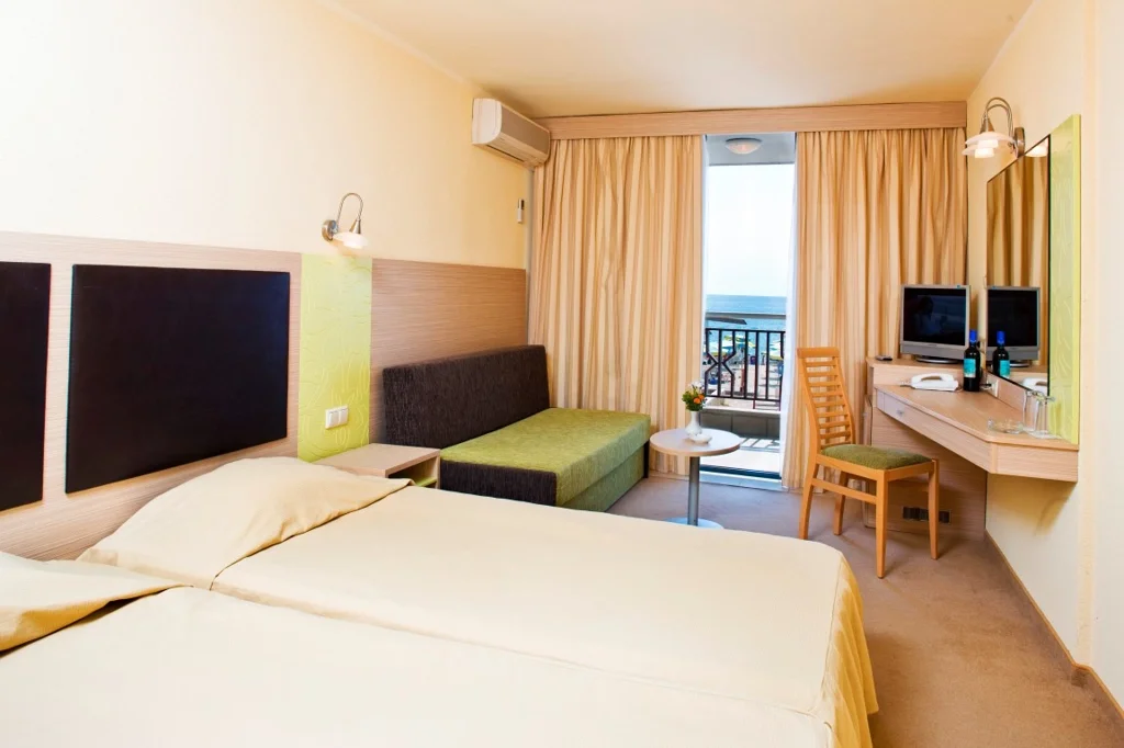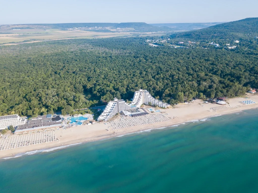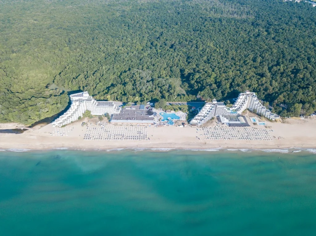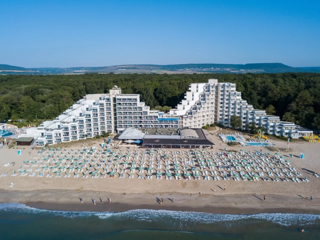 Hotel Slavuna este o alegere elegantă de 4 stele situată direct pe plaja de nisip a stațiunii Albena, una dintre cele mai apreciate destinații de pe litoralul bulgăresc. Renovat în 2008, hotelul îmbină confortul modern cu accesul privilegiat la una dintre cele mai frumoase plaje din Bulgaria, oferind un sejur complet în regim All Inclusive. Cu cele 8 etaje ale sale și o gamă variată de facilități partajate cu complexul din jur, Slavuna se adresează deopotrivă familiilor cu copii, cuplurilor și grupurilor care caută o vacanță fără griji.