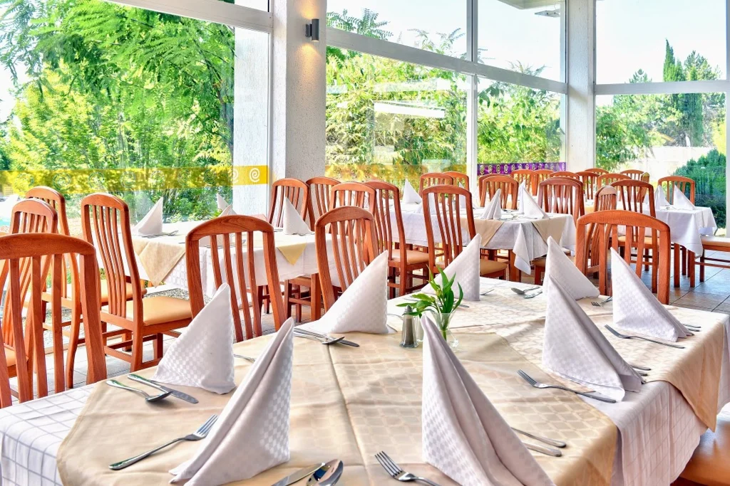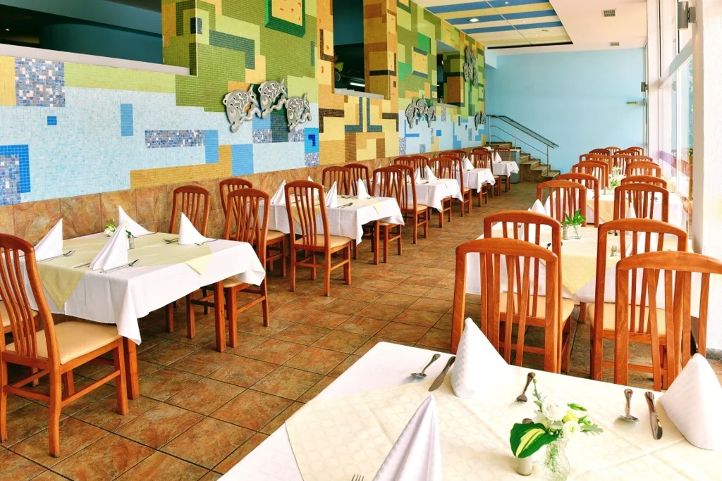 Sejurul la hotelul .Com se desfasoara in regim All Inclusive, care incepe cu cina din ziua sosirii si se incheie cu micul dejun din ziua plecarii. Orarul meselor principale este urmatorul: