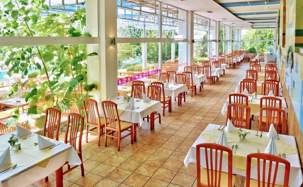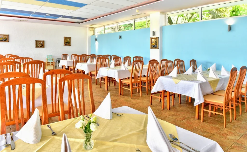 Camera Dubla (Double Room) - 15 m², capacitate maxima 2+1 persoane, dotata cu un pat dublu si un pat de o persoana sau doua paturi de o persoana si un fotoliu extensibil. Fiecare camera dispune de aer conditionat individual, televiziune prin cablu, telefon, baie cu dus si balcon. Pardoseala este acoperita cu gresie, curatenia se efectueaza zilnic, lenjeria de pat se schimba de doua ori pe saptamana, iar prosoapele sunt inlocuite zilnic. Restaurantul si camerele au fost renovate ultima data in perioada 2017-2018.