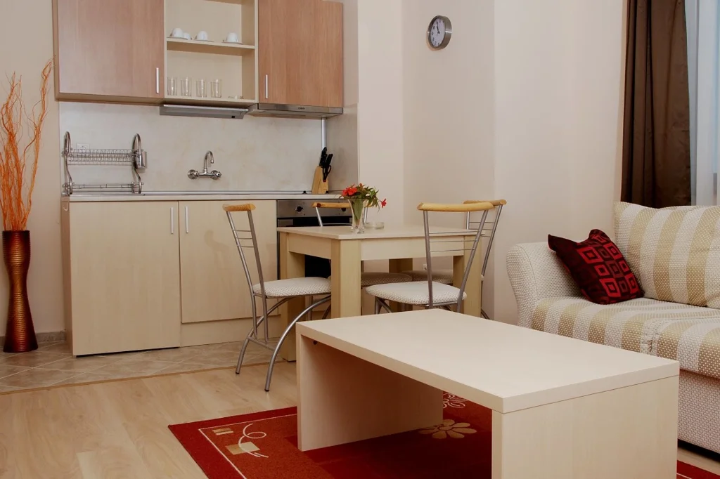Apartment Hotel – Apartamente de 60 m², situate în secțiunea hotel a complexului, cu capacitate de până la 2+2 sau 3 persoane. Dispun de un living și un dormitor separat, baie cu cadă, balcon, aer condiționat individual, televiziune prin satelit, minibar, telefon, acces Wi-Fi gratuit și uscător de păr. Curățenia zilnică și serviciile de schimb al lenjeriei sunt incluse, iar seiful este disponibil contra cost.
