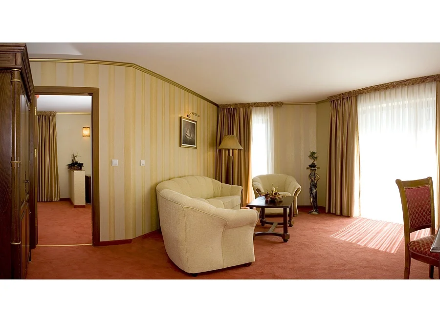 Apartamentul cu 1 Dormitor – hotelul dispune de 3 apartamente spațioase cu câte un dormitor separat, ce pot găzdui până la 2 adulți și 2 copii (maxim 3-4 persoane). Această opțiune este ideală pentru familii care doresc mai mult spațiu și intimitate în timpul vacanței. Și în cazul apartamentelor, curățenia zilnică este asigurată, cu schimb de lenjerie de două ori pe săptămână și prosoape de trei ori pe săptămână.