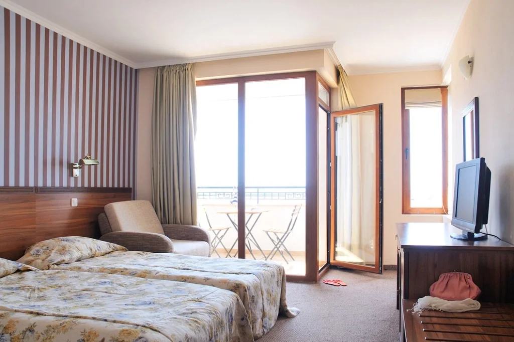 Hotelul se află la doar 300 de metri distanță de plajă – o plajă publică cu nisip, accesibilă rapid pe jos în câteva minute. Balchik este un orășel pitoresc situat pe malul Mării Negre, în nordul Bulgariei, cunoscut pentru Palatul Reginei Maria și Grădina Botanică, atracții care merită o vizită în timpul vacanței. Localitate liniștită și cu specific cultural pronunțat, Balchik reprezintă o alternativă autentică față de stațiunile bulgărești mai aglomerate. Accesul cu mașina este facilitat de parcarea gratuită pusă la dispoziție de hotel.