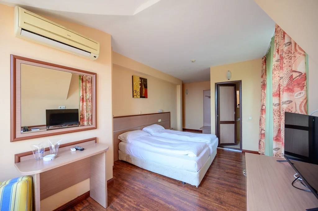Double Room – Camera dublă este amenajată cu două paturi separate sau un pat dublu, cu posibilitatea adăugării unui pat suplimentar sub forma unui fotoliu extensibil, putând găzdui până la 3 persoane. Dotată cu aer condiționat central, televizor cu ecran plat, canale prin cablu, telefon, aparat de cafea cu reaprovizionare zilnică gratuită și minibar gol, camera oferă confortul necesar unui sejur plăcut. Baia include duș, uscător de păr, prosoape și produse cosmetice de baie. Fiecare cameră dispune de balcon și pardoseală din plăci ceramice. Seiful este disponibil contra cost, iar Wi-Fi gratuit este inclus. Curățenia se efectuează zilnic, prosoapele se schimbă de două ori pe săptămână, la fel și lenjeria de pat. Camerele au beneficiat de renovarea din 2023.