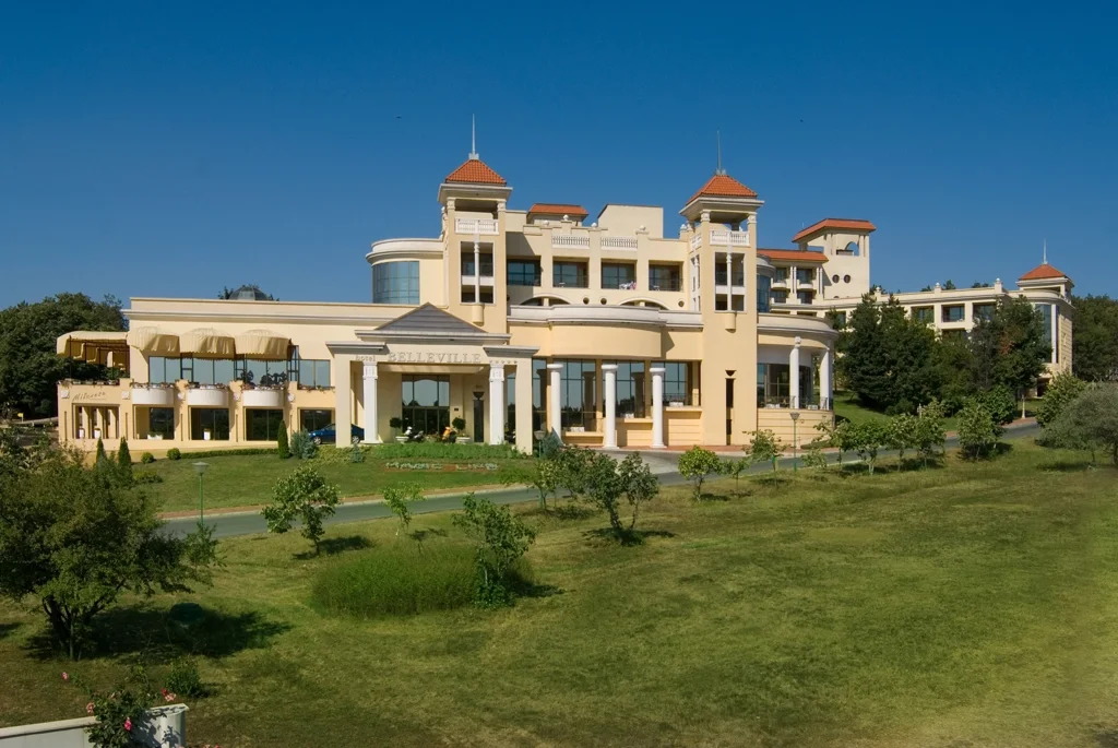 Hotel Belleville este o alegere rafinată pentru vacanța ta la Marea Neagră, oferind confortul clasificării de 4 stele în inima stațiunii Duni, una dintre cele mai apreciate destinații balneare din Bulgaria. Construit în 2003 și complet renovat în 2016, hotelul face parte din prestigiosul Duni Royal Resort, un complex vast care pune la dispoziția oaspeților o gamă impresionantă de facilități și activități. Cu regim All Inclusive complet, parcul acvatic gratuit și accesul direct la o plajă cu nisip fin, Hotel Belleville este alegerea ideală pentru familii cu copii, cupluri și grupuri care doresc un sejur fără griji în Bulgaria.
