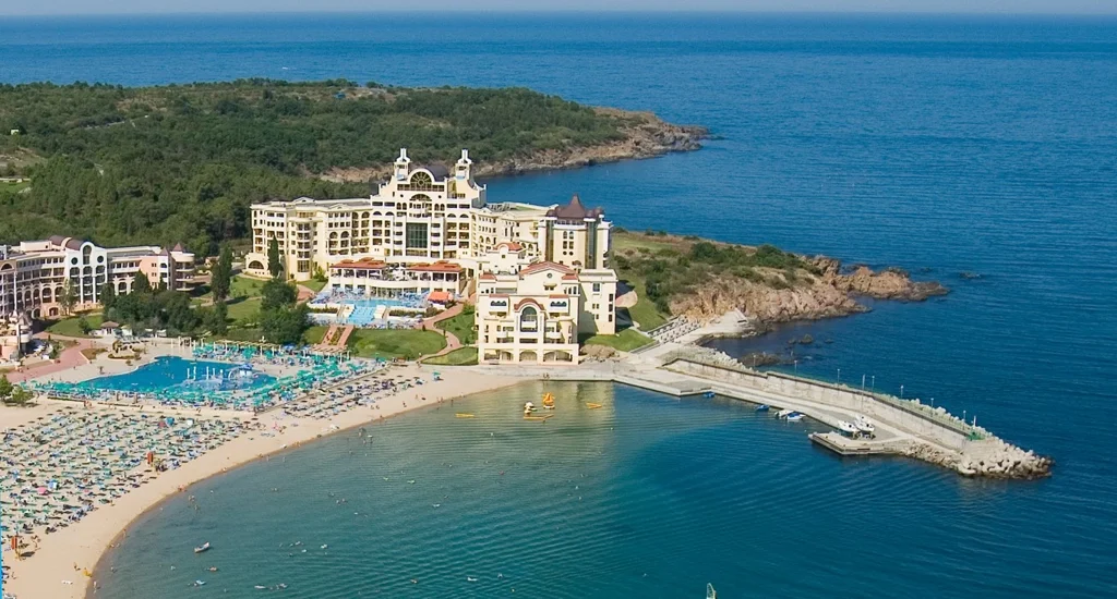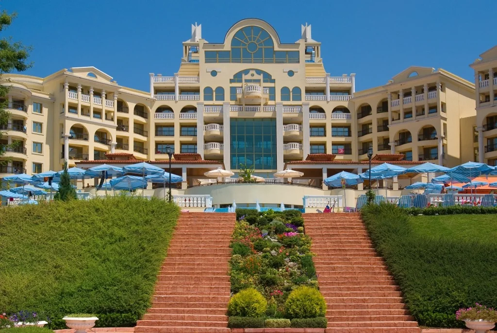 Marina Royal Palace reunește trei atuuri majore: poziția excepțională la 50 m de plajă, un pachet Ultra All Inclusive extrem de complet și accesul la toate facilitățile marelui complex Duni Royal Resort. Un aspect de luat în considerare este că unele facilități – restaurantele à la carte, clubul pentru copii sau parcul acvatic – se află la hotelurile din complex, nu direct în clădirea Marina Royal Palace, și pot fi indisponibile la începutul sau sfârșitul sezonului. Această destinație este ideală pentru familii cu copii, pentru cei care apreciază varietatea activităților, dar și pentru cupluri în căutarea unui sejur 5 stele cu toate serviciile incluse în Bulgaria.