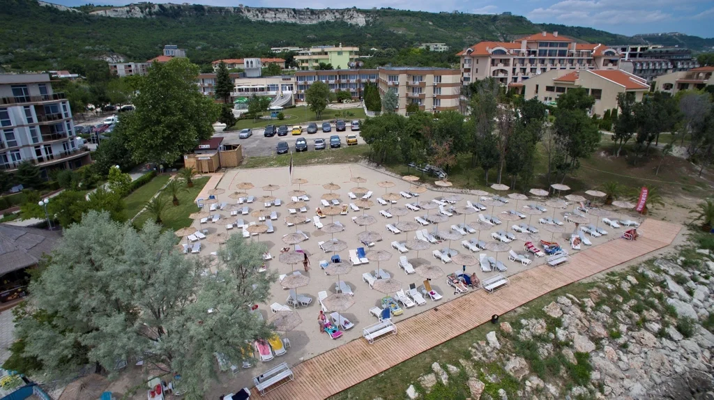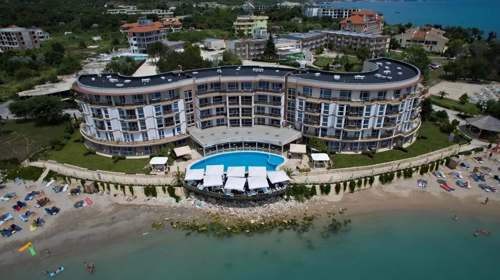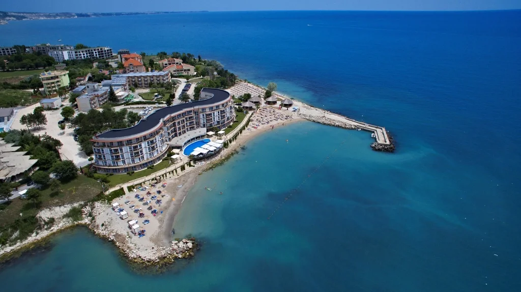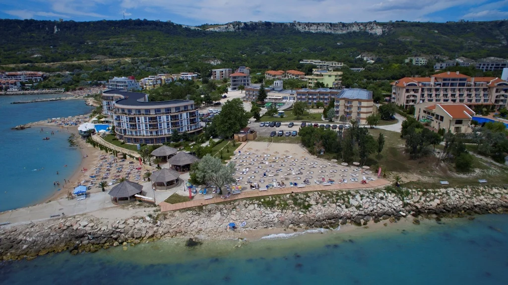 Situat la doar 10 metri de plaja cu nisip, Royal Bay Resort & Aqua Park din Kavarna este unul dintre cele mai atractive resorturi de 4 stele de pe coasta bulgară a Mării Negre. Renovat în 2023, hotelul combină confortul modern cu accesul direct la plajă și facilitățile unui aqua park, oferind o vacanță completă pentru familii cu copii, dar și pentru cupluri care caută relaxare autentică la malul mării.