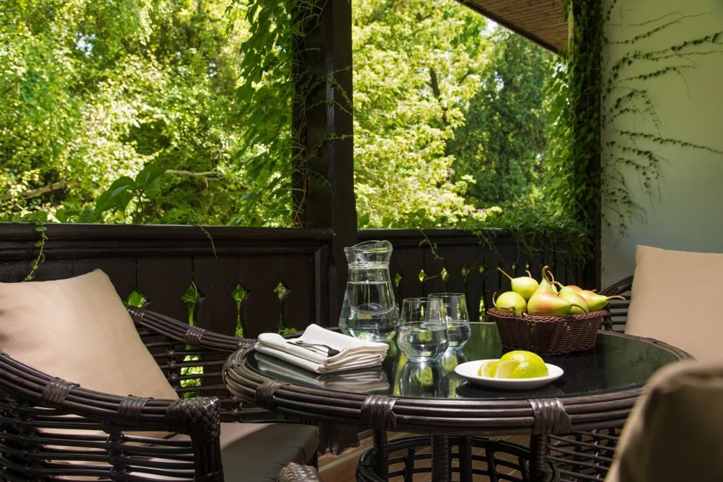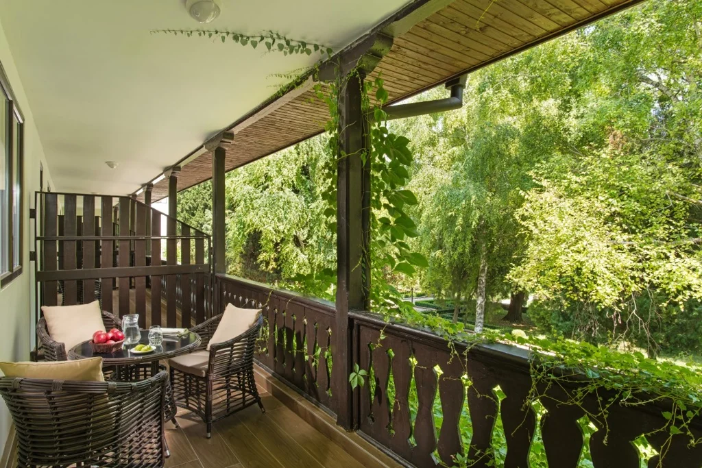Apartament Lux – 45-55 mp, capacitate maximă până la 5 persoane, vedere la grădină. Dispune de living și dormitor separate printr-o ușă, pat dublu în dormitor, canapea dublă și fotoliu în living, balcon, aer condiționat, TV, seif gratuit, minibar gratuit reaprovizionat zilnic, fierbător, 1 baie cu duș și 1 toaletă suplimentară, uscător de păr și produse cosmetice.