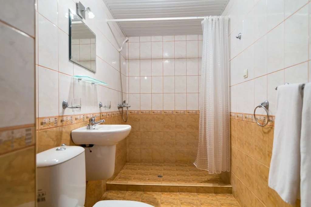 Apartamentul — cu o suprafață generoasă de 40 m², apartamentul este perfect pentru familii de până la 4 persoane (2 adulți + 2 copii). Dispune de două dormitoare separate, fiecare cu paturi individuale sau pat dublu, plus posibilitatea unui pat suplimentar. Dotările sunt identice cu cele ale camerelor duble: aer condiționat split, televizor cu ecran plat, seif gratuit, balcon, Wi-Fi gratuit, baie cu cabină de duș, articole de toaletă și pardoseală laminată. Spațiul suplimentar și separarea dormitorului fac din apartament alegerea ideală pentru familiile care prețuiesc intimitatea în vacanță.