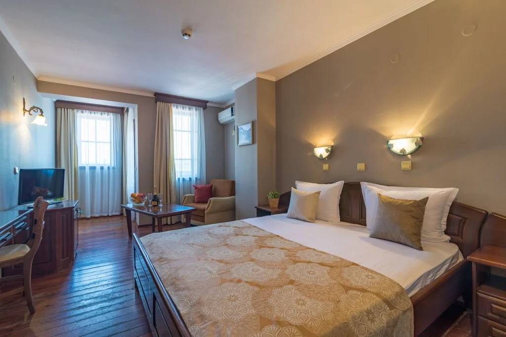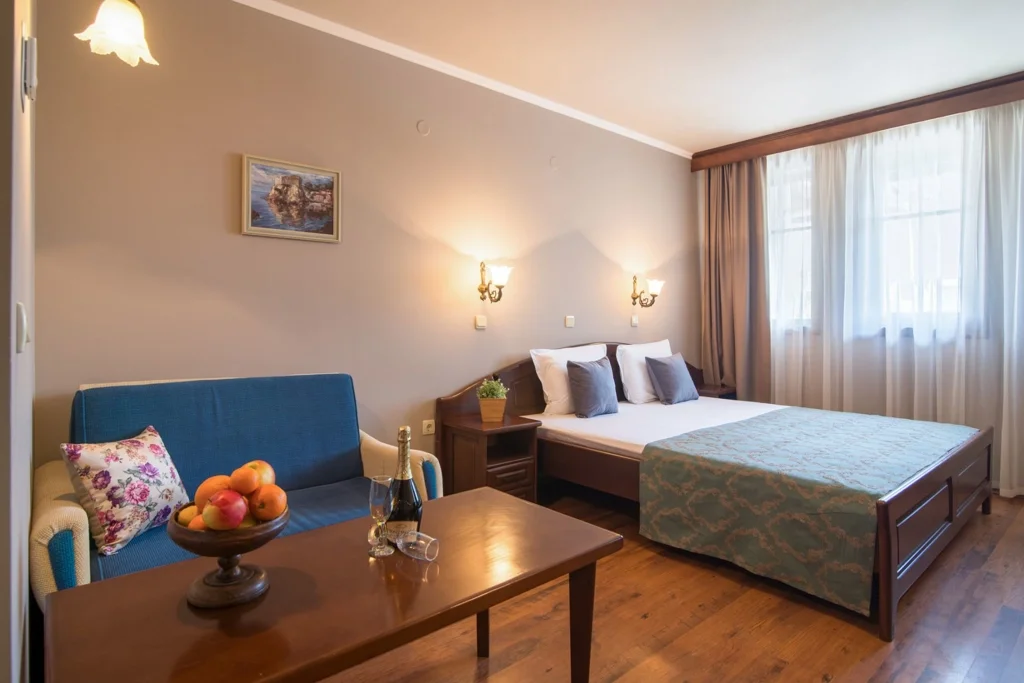 Camera Dublă — cu o suprafață de 25 m², camera poate găzdui până la 3 persoane (2 adulți + 1 copil), dispunând de două paturi separate sau un pat dublu, cu posibilitatea unui pat suplimentar (canapea extensibilă sau fotoliu extensibil). Fiecare cameră este dotată cu aparat de aer condiționat split, televizor cu ecran plat cu canale prin cablu, seif gratuit, balcon, Wi-Fi gratuit și pardoseală laminată. Baia include cabină de duș, prosoape, papuci și articole de toaletă gratuite. Uscătorul de păr este disponibil la cerere la recepție. Curățenia se efectuează zilnic, prosoapele se schimbă zilnic, iar lenjeria de pat o dată la trei zile. Camerele beneficiază de renovarea din 2024, care a adus un aspect proaspăt și modern.