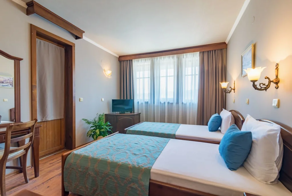 Hotelul Izvora din Kranevo este o alegere inspirată pentru cei care caută un sejur relaxant la Marea Neagră bulgară, la un raport calitate-preț excelent. Clasificat la 3 stele și renovat complet în 2024, hotelul îmbină confortul modern cu o atmosferă caldă și primitoare. Ideal pentru familii cu copii, dar și pentru cupluri sau prieteni care doresc o vacanță fără griji la malul mării, Izvora oferă tot ce este necesar pentru o cazare plăcută în una dintre cele mai liniștite stațiuni de pe litoralul bulgar.
