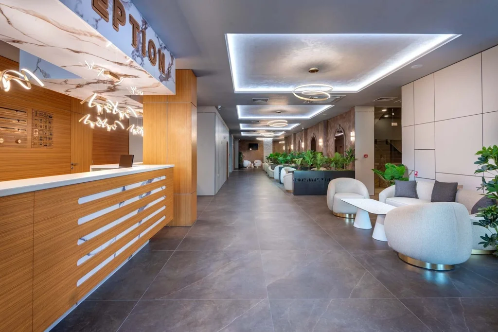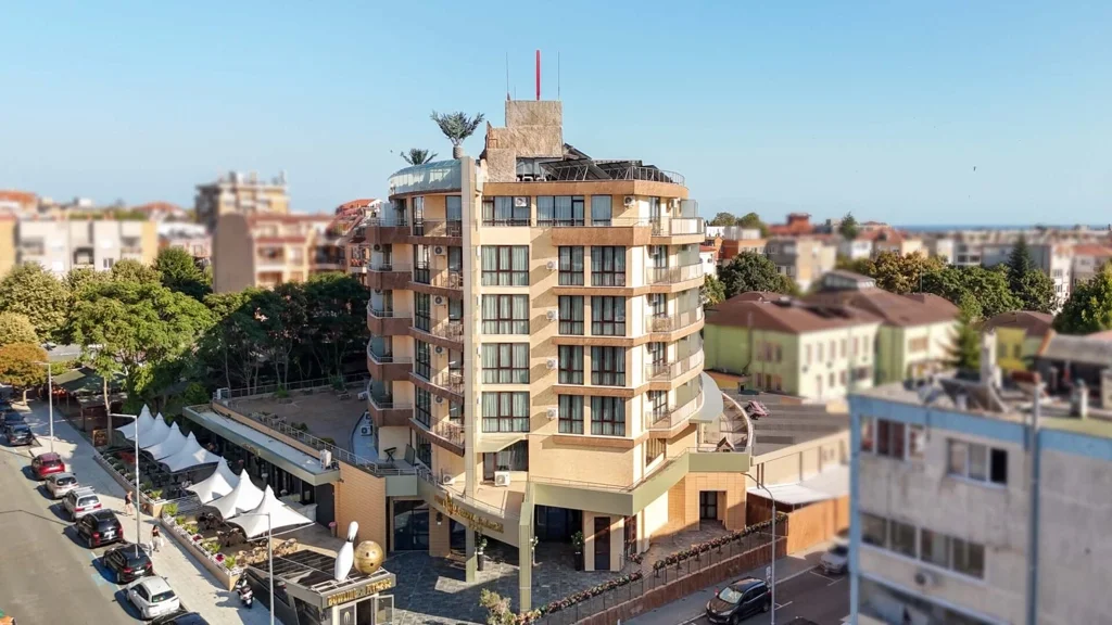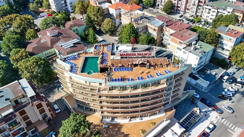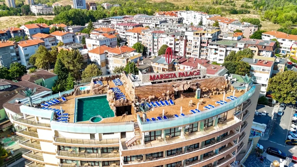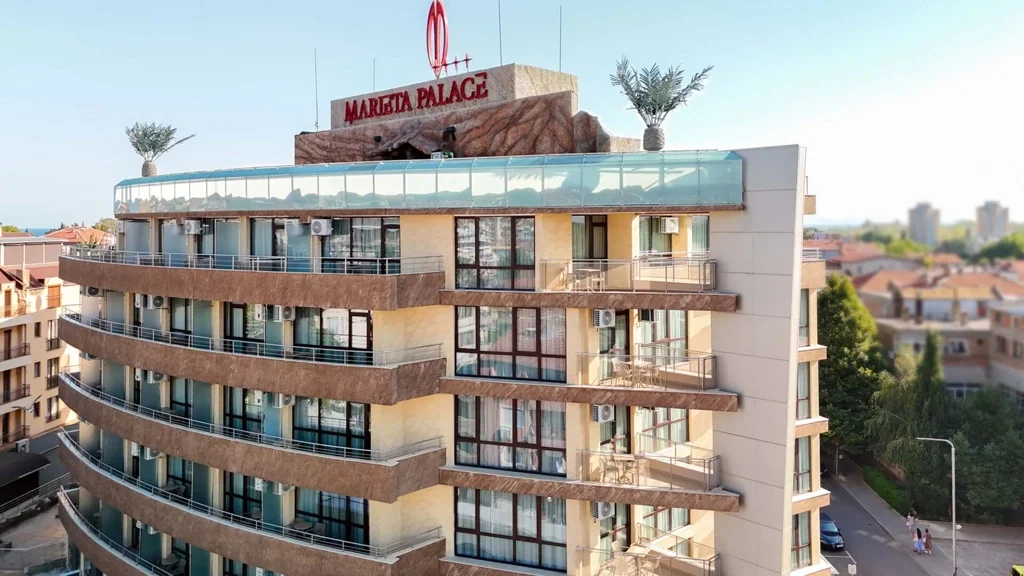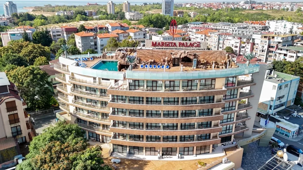Marieta Palace este un hotel de 4 stele modern și elegant, reconstruit complet în 2025, care îmbină confortul contemporan cu o localizare privilegiată în inima stațiunii Nessebar. Cu o arhitectură impresionantă desfășurată pe 8 etaje și o piscină spectaculoasă pe acoperis, acest hotel reprezintă alegerea ideală pentru cei care doresc un sejur de calitate pe Riviera Bulgară. Cazarea la Marieta Palace se potrivește perfect familiilor cu copii, cuplurilor și călătorilor care caută confort urban la pași distanță de plajă și de celebrul oraș vechi UNESCO.