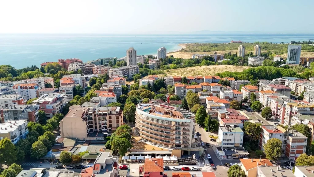 Marieta Palace se află pe strada Lyuben Karavelov nr. 15, în centrul orașului nou Nessebar, la doar 600 de metri de plajă – o plajă publică cu nisip fin, ideală pentru zilele lungi de soare bulgăresc. La aceeași distanță de 600 de metri se găsește și fascinantul oraș vechi Nessebar, declarat patrimoniu UNESCO, cu ruinele sale bizantine și atmosfera sa unică. Această poziție centrală îți oferă acces facil la restaurantele, magazinele și atracțiile locale, transformând vacanța într-o experiență completă, nu doar un sejur de plajă.