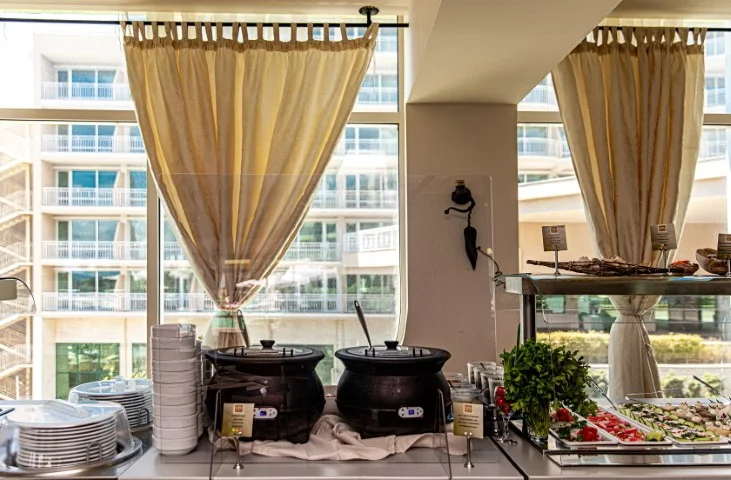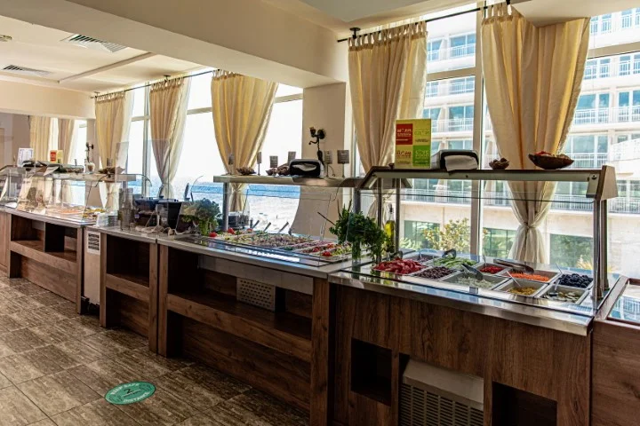 Cazarea la MPM Arsena în regim Ultra All Inclusive acoperă toate mesele și băuturile principale pe parcursul zilei. Micul dejun se servește în restaurantul principal cu terasă în aer liber, tip bufet, între orele 07:30 – 10:00, incluzând băuturi calde, răcoritoare, apă și sucuri. Prânzul (12:30 – 14:30) și cina (18:00 – 21:00) sunt tot în format bufet și includ apă, sucuri, băuturi răcoritoare, bere la halbă, vin, precum și o selecție de băuturi alcoolice de la mărci locale și internaționale. La barul de la piscină (10:00 – 23:00) și barul din hol (08:00 – 23:00) sunt disponibile băuturi calde, răcoritoare, cocktailuri și alcool local și internațional. Taraba de pe plajă funcționează între 10:00 și 18:00 și oferă băuturi calde, răcoritoare, bere, vin și apă. Umbrelele și șezlongurile pe plajă sunt incluse gratuit (maxim 1 umbrelă și 2 șezlonguri per cameră). La prânz și cină se aplică un cod vestimentar elegant casual.