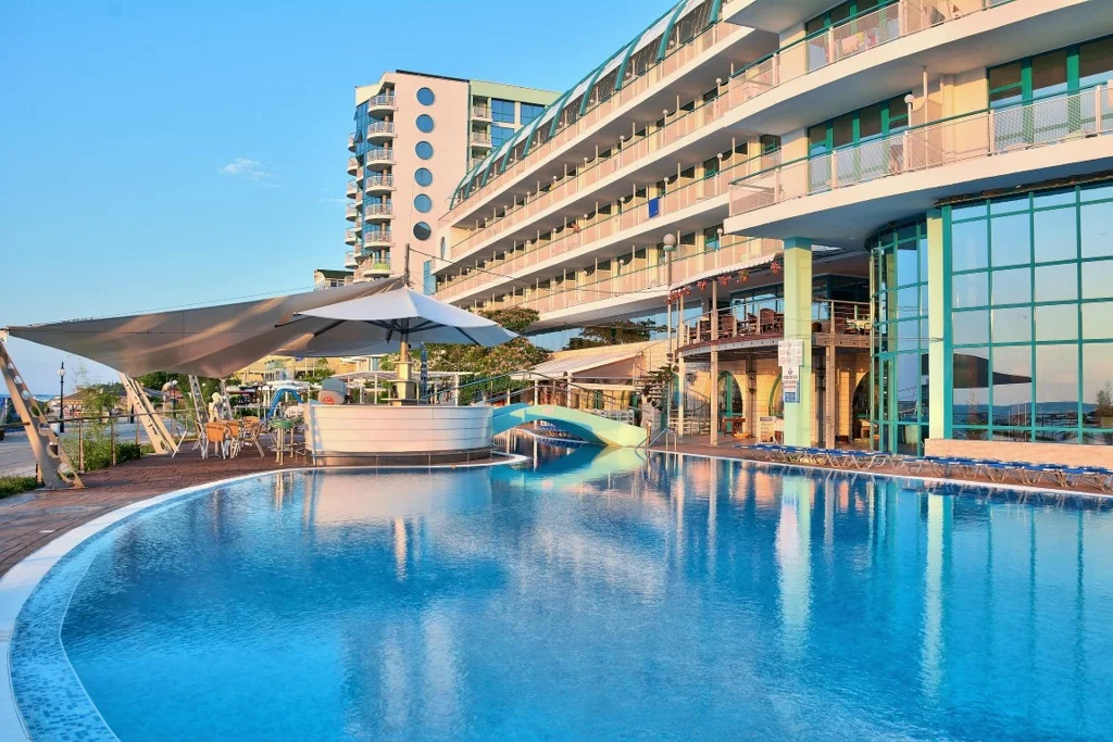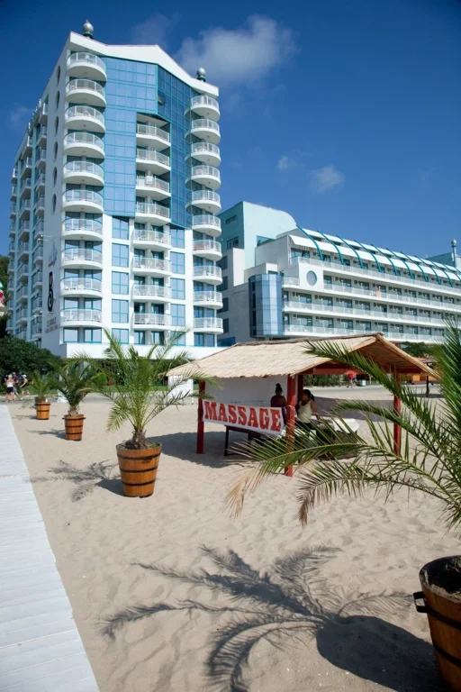 Berlin Golden Beach este un hotel de 4 stele amplasat direct pe plaja cu nisip fin a stațiunii Golden Sands, oferind turiștilor o experiență completă de vacanță în regim All Inclusive Gold. Construit în 2001 și renovat în 2015, complexul impresionează prin dimensiunile sale generoase, cu patru clădiri, 355 de unități de cazare și acces privilegiat la una dintre cele mai frumoase plaje de la Marea Neagră. Acest hotel este ideal atât pentru familiile cu copii, cât și pentru cuplurile care caută confort, animație și toate facilitățile incluse într-un singur pachet.