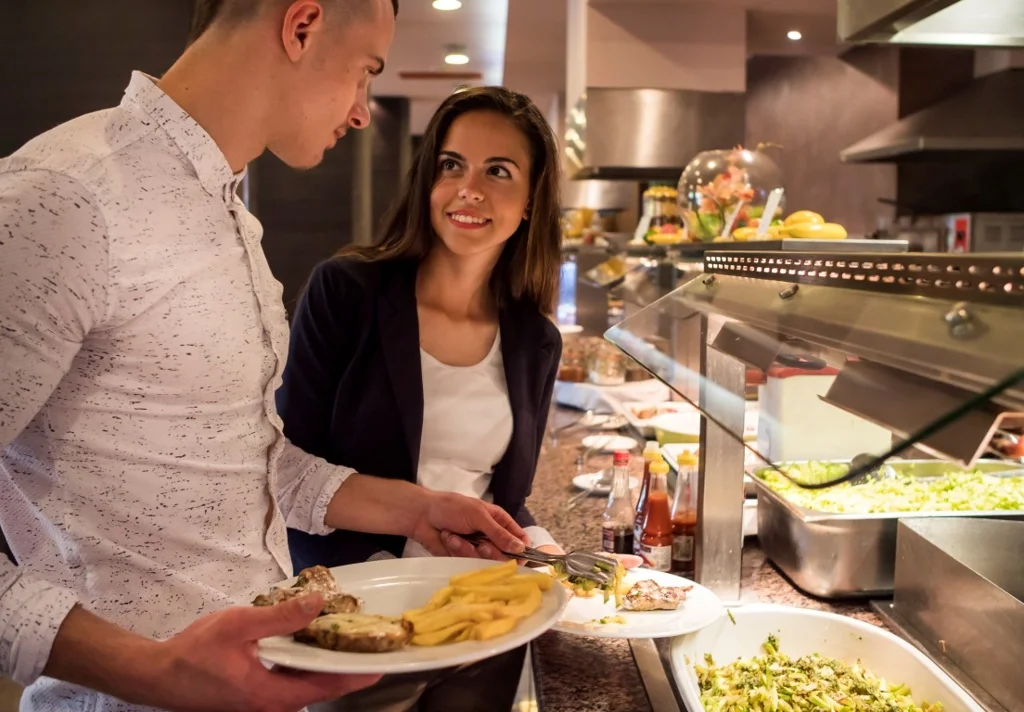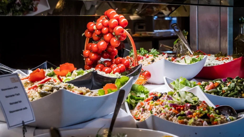 Sejurul în regim All Inclusive la SH Dolce Vita include trei mese principale servite la bufet: mic dejun între 07:30–10:00, prânz între 12:00–14:00 și cină între 18:00–21:00. Un mic dejun continental târziu este disponibil între 10:00–11:00. La barul de la piscină, între 12:00–15:00 (în extrasezon), sunt disponibile cafea, ceai și prăjituri. De două ori pe săptămână au loc seri tematice cu meniuri speciale. Oaspeții cu un sejur de minimum 7 nopți beneficiază, o singură dată, de o cină la restaurantul tematic grecesc sau bulgăresc (rezervare necesară). Băuturile locale alcoolice și răcoritoarele sunt incluse nelimitat în toate barurile și restaurantele hotelului: barul din hol (10:00–23:00), barul de la piscină (10:00–17:00) și lounge barul (19:00–24:00). Barul de pe plajă oferă apă, băuturi răcoritoare, bere și cafea incluse. Băuturile internaționale nu sunt incluse în pachet. Codul vestimentar impune pantaloni lungi la cină și interzice costumele de baie la prânz.