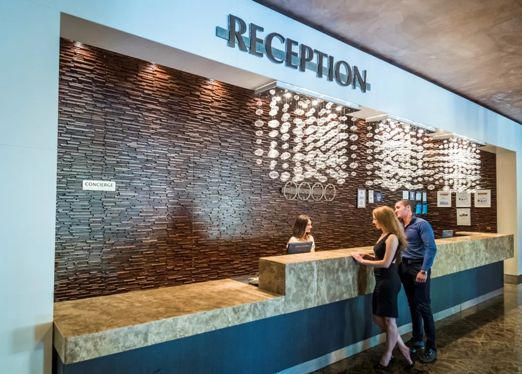 Camera Dublă – 32 m², capacitate maximă 3 persoane, cu vedere la parc (172 camere) sau la mare (59 camere). Dotată cu două paturi individuale (unibile), pat suplimentar tip fotoliu extensibil, aer condiționat central, televizor prin satelit, minibar (la cerere, contra cost), fierbător electric cu ceai/cafea gratuit, telefon, Wi-Fi gratuit, seif gratuit, baie cu duș sau cadă, uscător de păr, produse cosmetice și balcon mobilat. Curățenie zilnică, schimb lenjerie la 3 zile, prosoape zilnic.