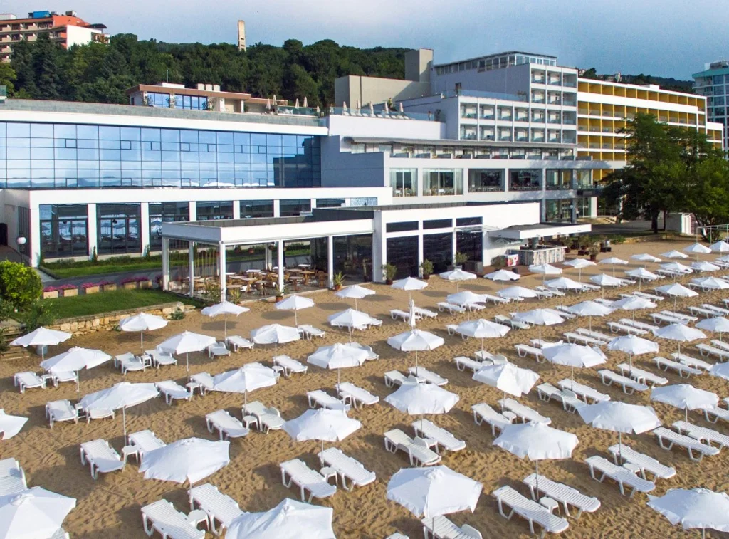 Hotelul se află în partea de nord a stațiunii Golden Sands, la doar 10 metri de plajă, ceea ce înseamnă că nisipul fin și apele Mării Negre sunt practic la ușa dumneavoastră. Centrul stațiunii se găsește la aproximativ 1,5 km distanță, accesibil cu ușurință pe jos sau cu mijloace de transport locale. Zona oferă numeroase oportunități de explorare, atât în cadrul stațiunii, cât și în împrejurimi, cu posibilitatea organizării de excursii către Varna sau alte atracții ale litoralului bulgar.