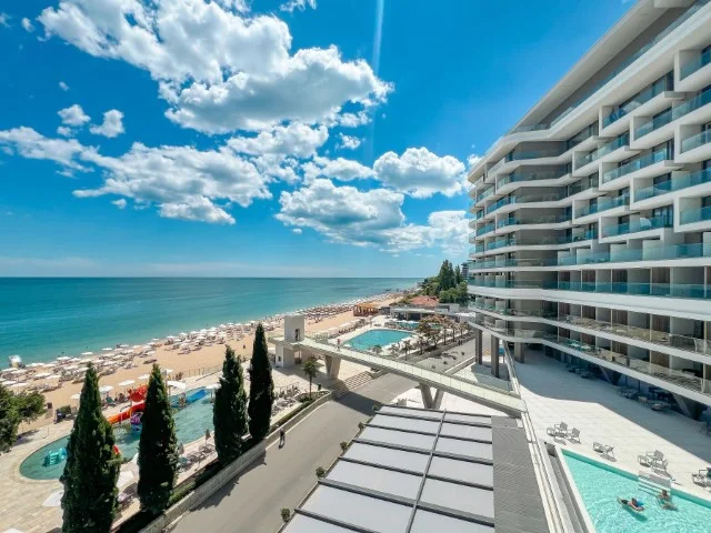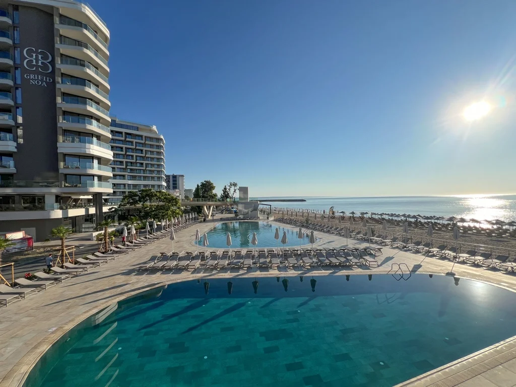 Deschis pentru prima dată în 2024, Grifid Noa este un hotel de 5 stele care redefinește conceptul de lux pe litoralul Mării Negre, în stațiunea Golden Sands din Bulgaria. Cu o clădire impunătoare de 12 etaje, 315 camere elegante și o ofertă Premium All Inclusive dintre cele mai generoase din regiune, hotelul este conceput pentru turiștii care nu vor să facă niciun compromis în materie de confort și rafinament. Fie că vii în cuplu, cu familia sau cu prietenii, Grifid Noa promite o vacanță de neuitat la malul mării.