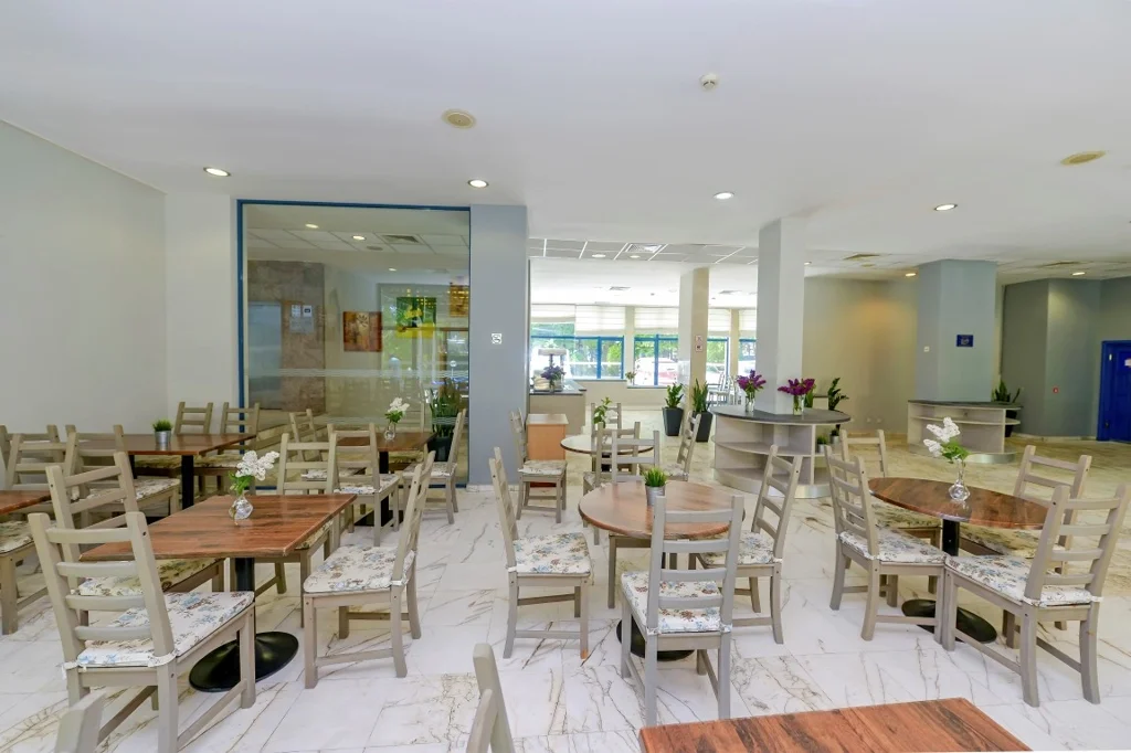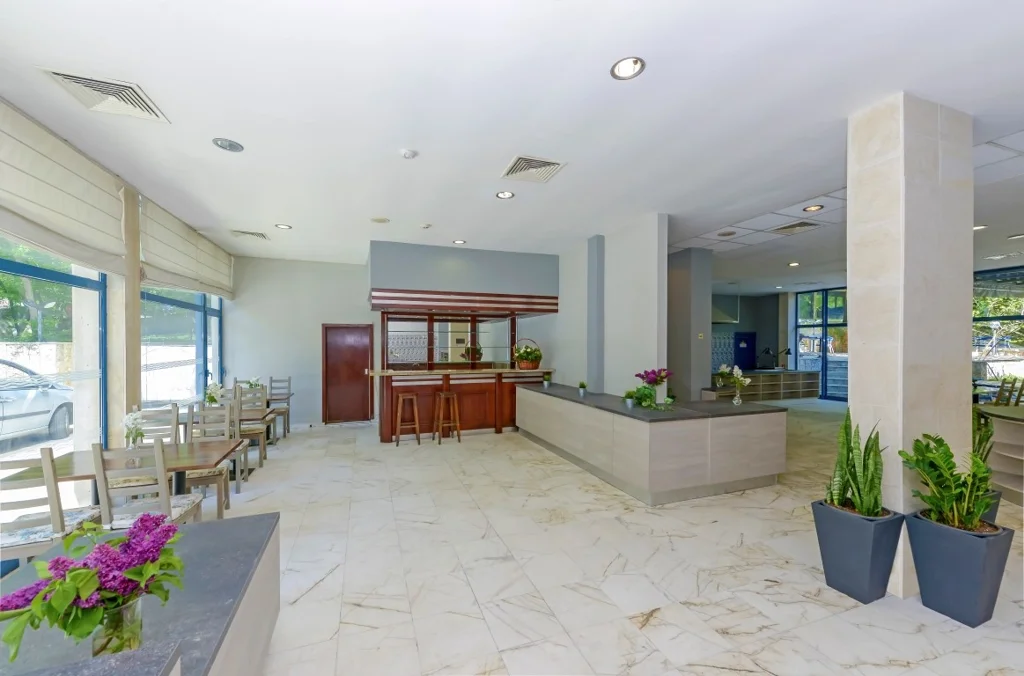 Hotelul dispune de o piscină exterioară renovată în 2023, cu o secțiune dedicată copiilor, înconjurată de șezlonguri și umbrele gratuite. Restaurantul principal și cele două baruri (barul din hol și barul de la piscină) acoperă nevoile de servire pe tot parcursul zilei. Wi-Fi-ul este gratuit în zonele publice, iar hotelul este dotat cu lift și este accesibil pentru persoanele cu dizabilități. Printre serviciile disponibile se numără room service, spălătorie (contra cost), parcare auto (contra cost, în funcție de disponibilitate) și stație de încărcare pentru mașini electrice. Seiful este disponibil la recepție contra cost, iar fierul de călcat poate fi împrumutat gratuit de la recepție. Recepția asigură servicii pentru check-in de la 14:00 și check-out până la 12:00.