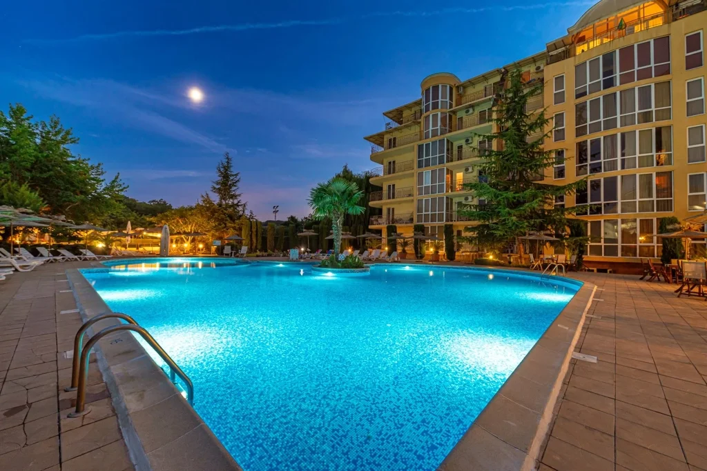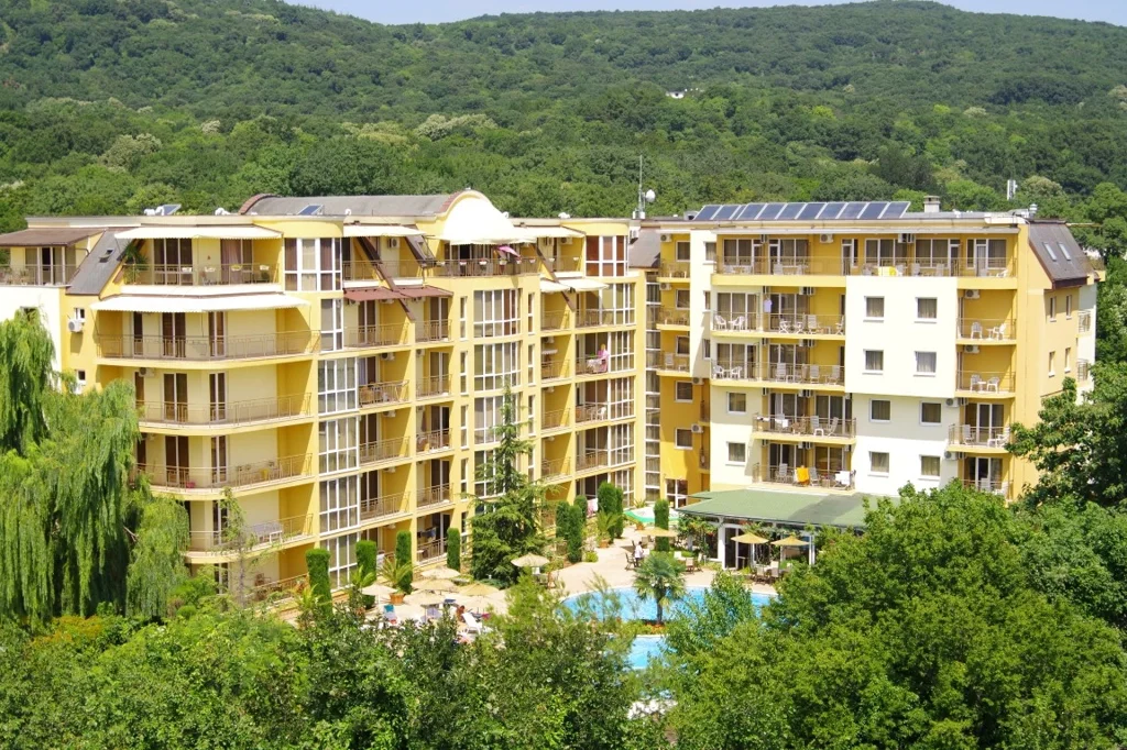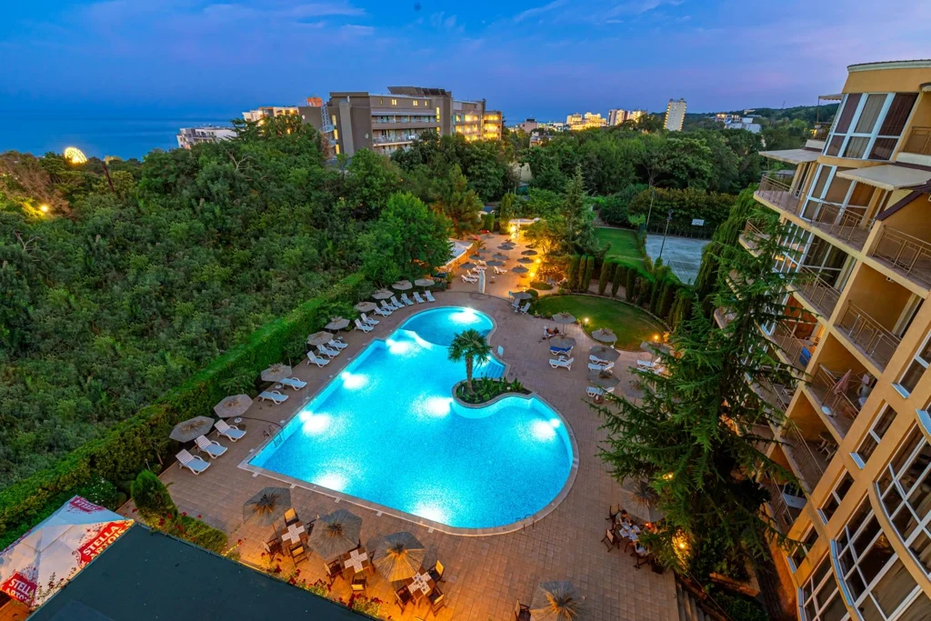 Joya Park este o alegere excelentă pentru familiile cu copii și cupluri care caută o vacanță confortabilă în Golden Sands, cu camere și apartamente spațioase, o piscină bine dotată și facilități de wellness. Un aspect de luat în calcul: plaja se află la 550 de metri de hotel, distanță parcurgă pe jos în aproximativ 7-8 minute, ceea ce înseamnă că nu te vei trezi cu vederea la mare, dar vei beneficia de liniște și un raport calitate-preț avantajos. Cu apartamente de până la 110 m² și facilități complete, hotelul este ideal și pentru sejururi mai lungi sau pentru familii extinse care caută spațiu și confort la un standard de 4 stele.