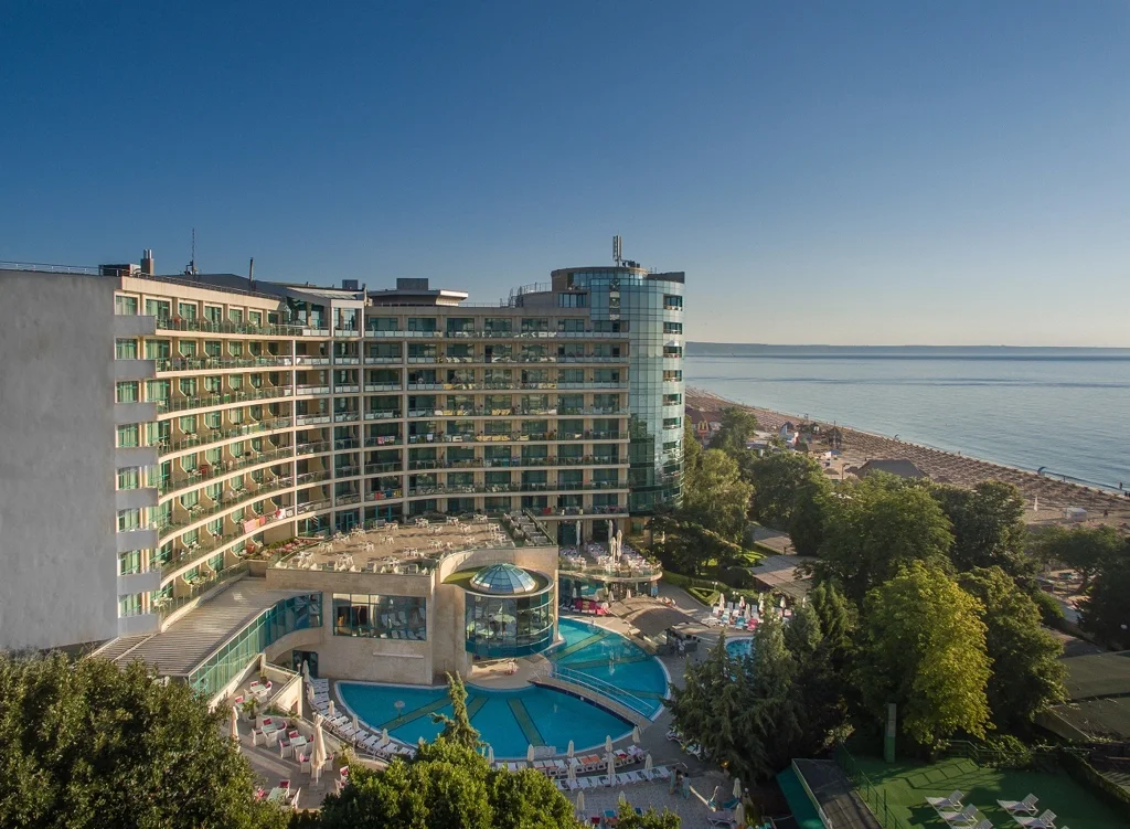 Situat în inima stațiunii Golden Sands, Marina Grand Beach este un hotel de 4 stele care îmbină confortul modern cu o localizare de excepție, la doar 30 de metri de plaja cu nisip. Renovat în 2018, hotelul oferă camere și apartamente spațioase, dotate la standarde superioare, într-un cadru ideal pentru familii cu copii, dar și pentru cupluri care caută un sejur all inclusive fără griji în una dintre cele mai populare destinații de pe litoralul bulgăresc.