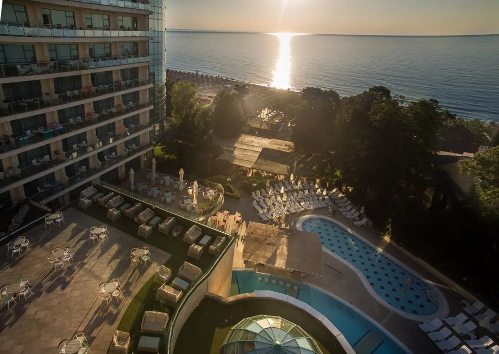 Marina Grand Beach este alegerea potrivită pentru familiile cu copii care doresc un sejur all inclusive complet, cu acces facil la plajă și activități pentru toate vârstele. Cei trei piloni ai vacanței reușite – localizarea excelentă la 30 m de mare, varietatea serviciilor incluse și spațiul generos al apartamentelor – fac din acest hotel o opțiune competitivă în stațiunea Golden Sands. Un aspect de reținut: șezlongurile și umbrelele pe plajă sunt contra cost. Cuplurile și grupurile de prieteni vor aprecia și ele atmosfera animată și oferta SPA, însă hotelul este cu adevărat adaptat nevoilor familiilor cu copii.