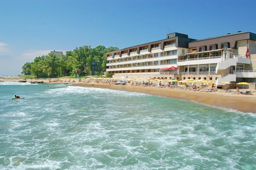 Pe malul Mării Negre, direct pe plajă, HVD Nympha este un hotel de 4 stele conceput exclusiv pentru adulți (18+), oferind o experiență rafinată și liniștită pe Riviera bulgărească. Renovat în 2017, hotelul îmbină eleganța modernă cu confortul autentic, punând la dispoziția oaspeților săi un sejur all inclusive de calitate, departe de agitația familiilor cu copii. Este alegerea ideală pentru cupluri și adulți care caută relaxare, intimitate și servicii atente pe malul mării.