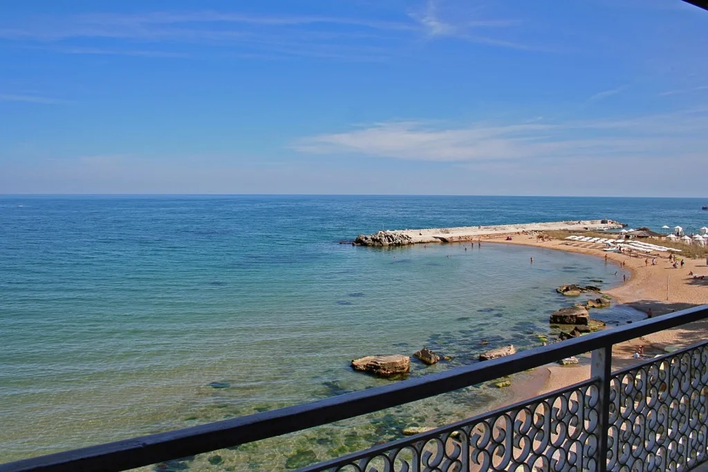 Plaja cu nisip, la 20 de metri de hotel. Fundul mării este plat, cu acces lin.