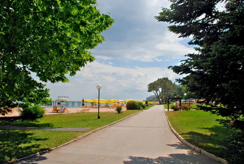 Unul dintre cele mai mari avantaje ale hotelului HVD Nympha este poziția sa privilegiată: hotelul se află în prima linie, direct pe plajă, pe Riviera bulgărească. Aceasta înseamnă că trecerea de la șezlong la cameră se face în câteva zeci de secunde, fără drumuri suplimentare. Hotelul face parte din complexul HVD, alături de vecina sa HVD Riviera Beach, de unde oaspeții pot accesa facilități extinse de wellness și spa. Zona Riviera este bine conectată cu principalele localități și atracții ale litoralului bulgăresc, oferind un punct de plecare convenabil pentru excursii în împrejurimi.