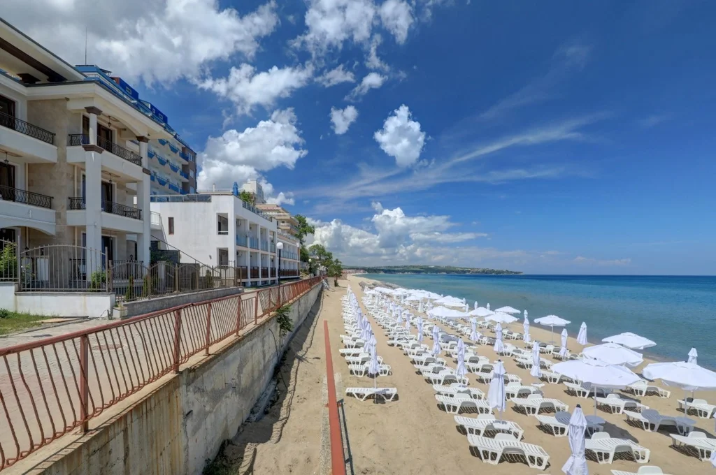 Unul dintre cele mai mari atuuri ale hotelului Paraiso Beach este pozitionarea sa privilegiata: la doar 10 metri de plaja cu nisip, practic cu picioarele in nisip inca din prima zi a sejurului. Hotelul se afla pe strada Chernomorska nr. 16, in statiunea Obzor, la 250 de metri de centrul orasului, ceea ce inseamna ca magazine, restaurante locale si promenada sunt la un scurt mers pe jos. Obzor este o destinatie apreciata pentru atmosfera sa calma si familista, situata pe coasta bulgara a Marii Negre, la aproximativ 90 km de aeroportul international din Burgas, cel mai apropiat hub aerian pentru turistii romani care aleg aceasta zona.