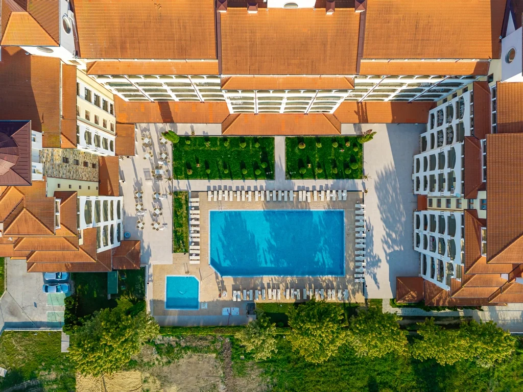 Sunrise All Suites Resort este un complex de apartamente de 4 stele din stațiunea Obzor, Bulgaria, care redefinește conceptul de vacanță în familie printr-un spațiu generos, dotări moderne și un pachet all inclusive complet. Construit în 2008 și renovat în 2016, hotelul impresionează prin varietatea opțiunilor de cazare, toate configurate ca apartamente sau camere spațioase, ideale pentru familii cu copii, grupuri de prieteni sau cupluri care apreciază confortul și libertatea. Dacă îți dorești un sejur relaxant la Marea Neagră, cu toate incluse și fără grija costurilor zilnice, Sunrise All Suites Resort este alegerea potrivită.