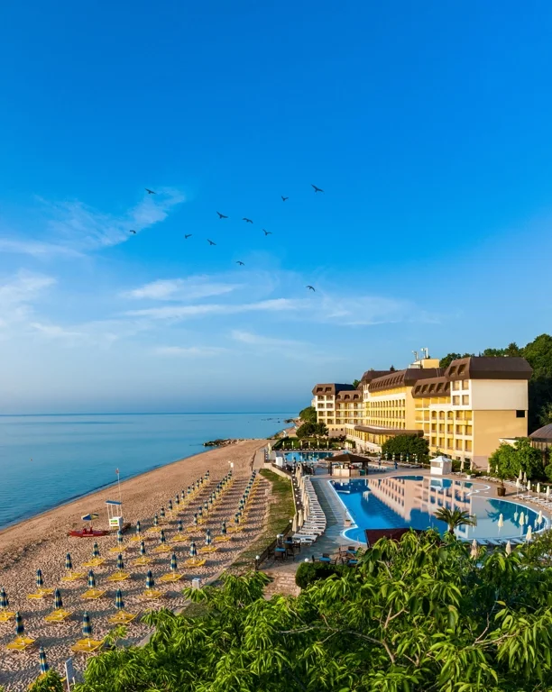 HVD Riviera Beach este un hotel de 5 stele situat în stațiunea Riviera, care îmbină eleganța unui resort premium cu accesul direct la mare, oferind una dintre cele mai complete experiențe de vacanță din regiune. Cu o arhitectură modernă construită în 2002-2004, hotelul se adresează deopotrivă familiilor cu copii, cuplurilor și turiștilor care caută confort autentic și servicii de înaltă clasă. Regimul Ultra All Inclusive face din acest sejur o alegere fără griji, în care singura preocupare rămâne relaxarea totală.