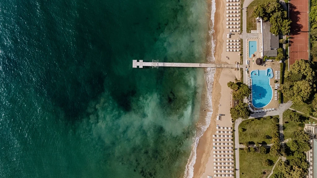 HVD Riviera Beach se află la doar 50 de metri de plajă, ceea ce înseamnă că nisipul și apa mării sunt la câțiva pași de intrarea hotelului. Această proximitate excepțională față de plajă reprezintă unul dintre cele mai mari atuuri ale cazării, mai ales pentru familiile cu copii mici. Stațiunea Riviera beneficiază de o poziție geografică excelentă, cu acces facil la principalele atracții turistice din zonă și posibilitatea de a organiza excursii în împrejurimi direct de la hotel.