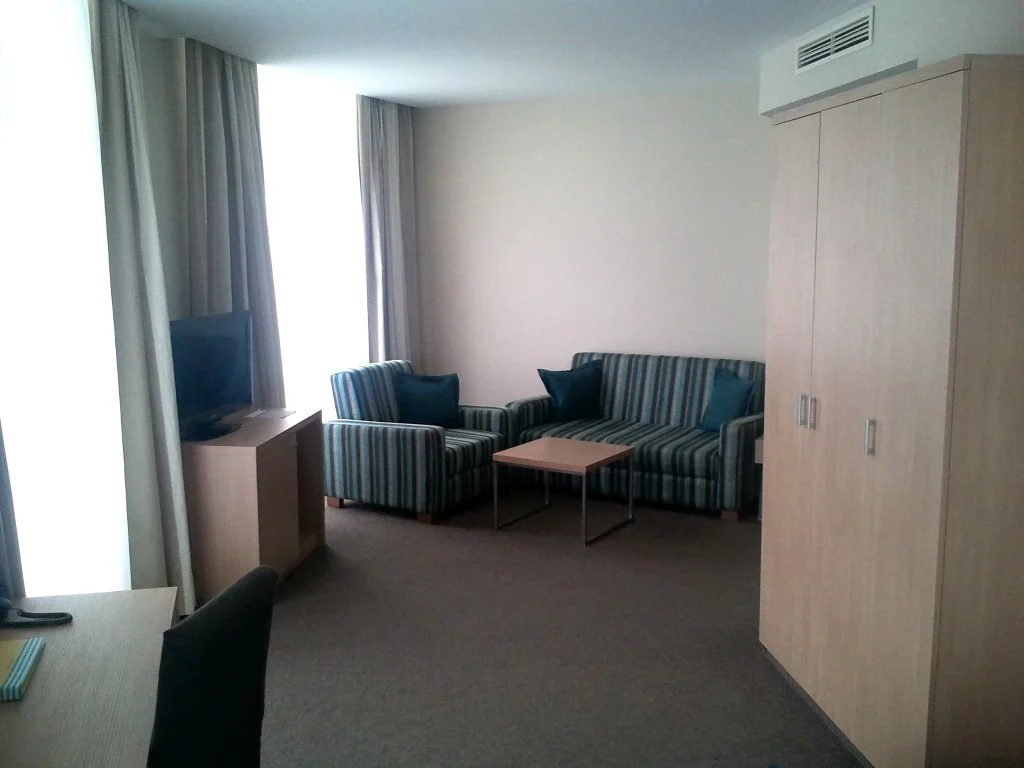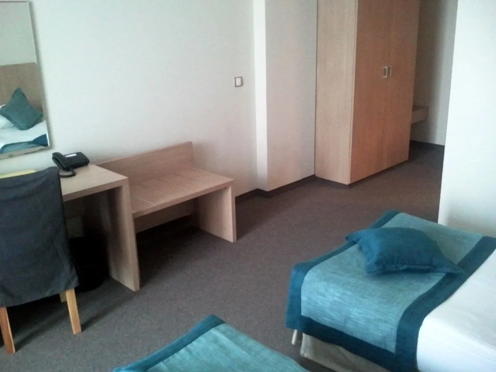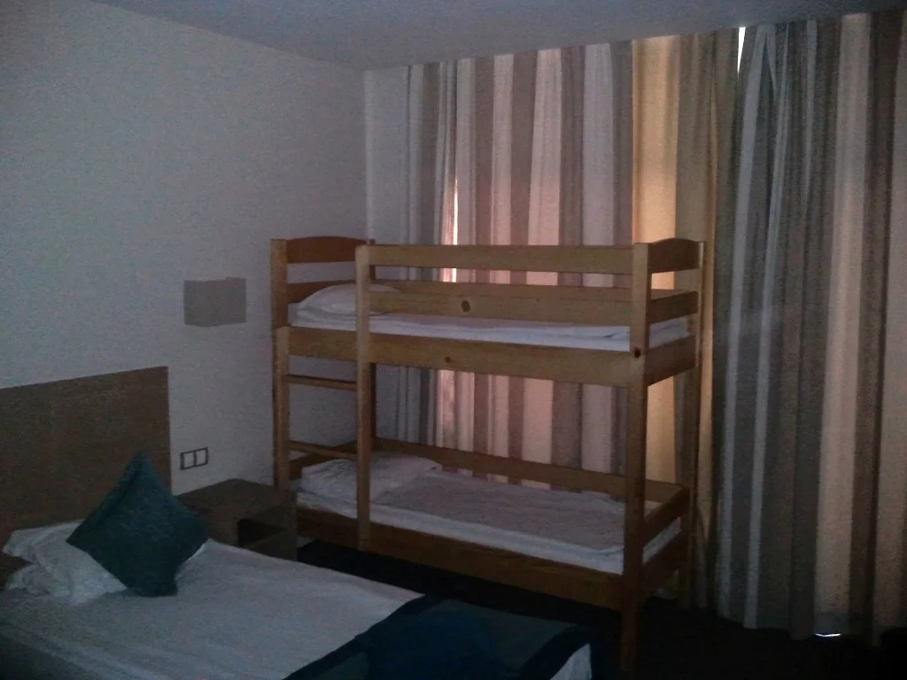 Camera Family – 25 m², concepută special pentru familiile cu copii, cu capacitate de 4 persoane (2 adulți + 2 copii). Configurația include două paturi de o persoană (unibile ca pat dublu) și două paturi suprapuse cu lungimea de 1,60 m, plus fotoliu extensibil. Dotările sunt complete: aer condiționat central, TV prin cablu, Wi-Fi gratuit, baie cu duș/cadă, uscător de păr, prosoape, halat de baie și balcon mobilat. De asemenea, hotelul pune la dispoziție 1 cameră adaptată pentru persoane cu dizabilități, cu o capacitate de 2 persoane.