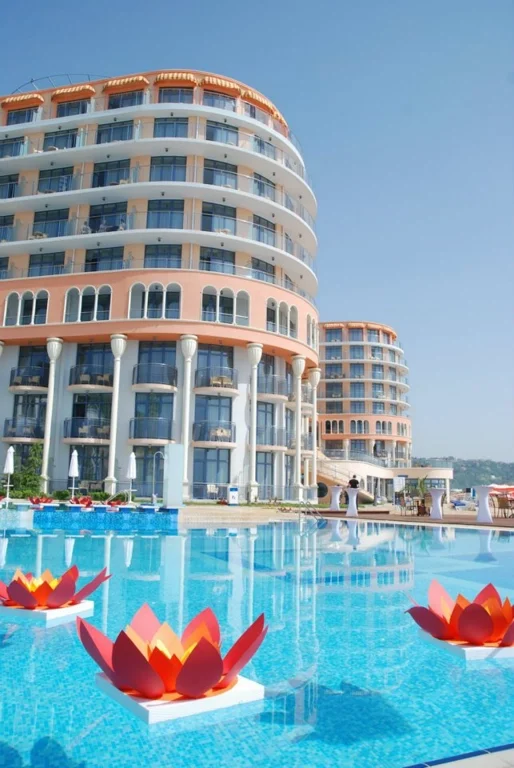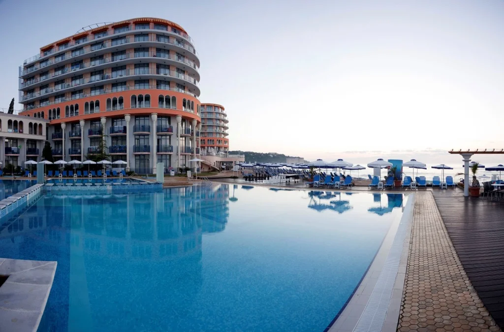 Hotel Azalia este o alegere de 4 stele situată direct pe plaja din stațiunea Saints Constantine and Elena, una dintre cele mai apreciate destinații de pe litoralul bulgăresc al Mării Negre. Construit în 2004 și renovat complet în 2019, hotelul îmbină confortul modern cu o localizare de excepție, oferind acces direct la o plajă privată cu nisip fin. Cu regimul Ultra All Inclusive+, facilități spa, piscine multiple și programe dedicate copiilor, Hotel Azalia este alegerea ideală pentru familii, cupluri și grupuri care doresc o vacanță fără griji pe coasta bulgărească.