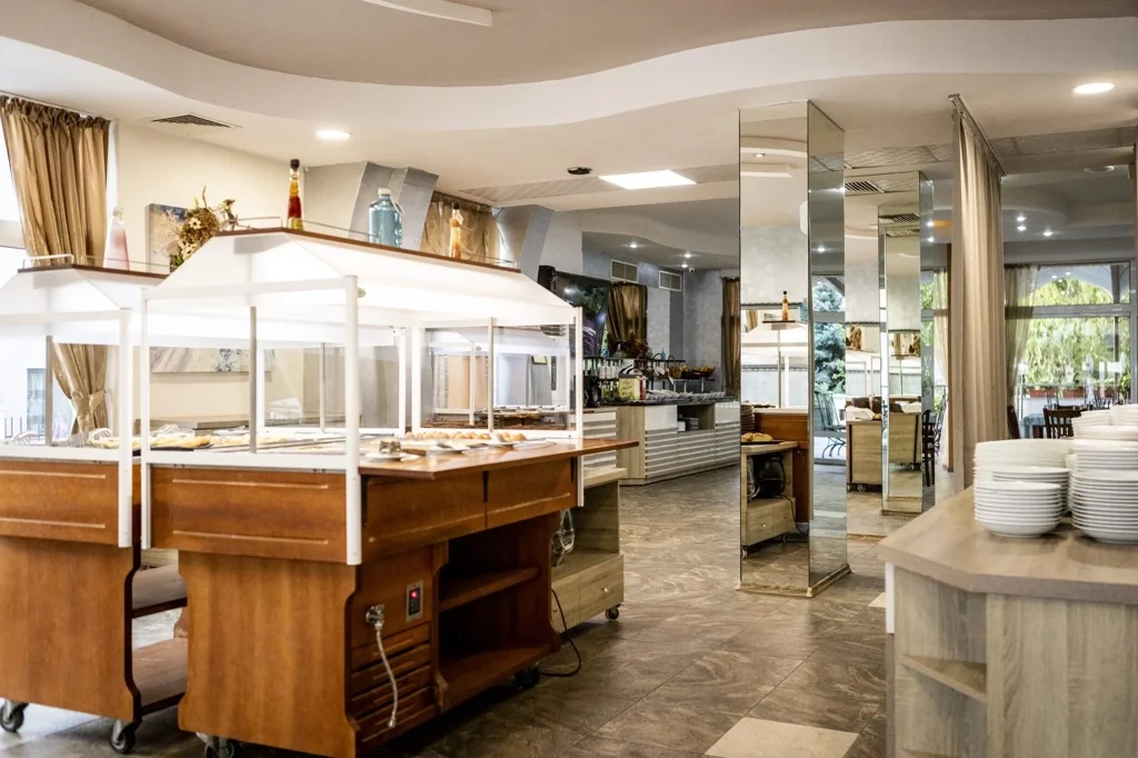 Hotelul Flagman oferă un pachet All Inclusive complet, care acoperă toate mesele principale și băuturile locale pe parcursul întregii zile. Micul dejun se servește la bufet între orele 08:00-10:00 și include băuturi calde (ceai, cafea, cacao, lapte), sucuri și apă. Prânzul (12:00-14:00) și cina (18:00-20:00) sunt servite tot la bufet și includ, pe lângă preparatele culinare, băuturi calde, sucuri, apă, băuturi răcoritoare, bere la halbă, vin la halbă și băuturi alcoolice locale. Snack-urile sunt disponibile zilnic între orele 16:00-17:00 la barul din hol, unde se servesc pizza, sandvișuri și gustări. De asemenea, între orele 10:00 și 22:00, oaspeții beneficiază de băuturi locale nelimitate: băuturi calde, bere și vin la halbă, băuturi carbogazoase, sucuri și băuturi alcoolice locale. Băuturile importate nu sunt incluse în pachetul All Inclusive și se achită separat.