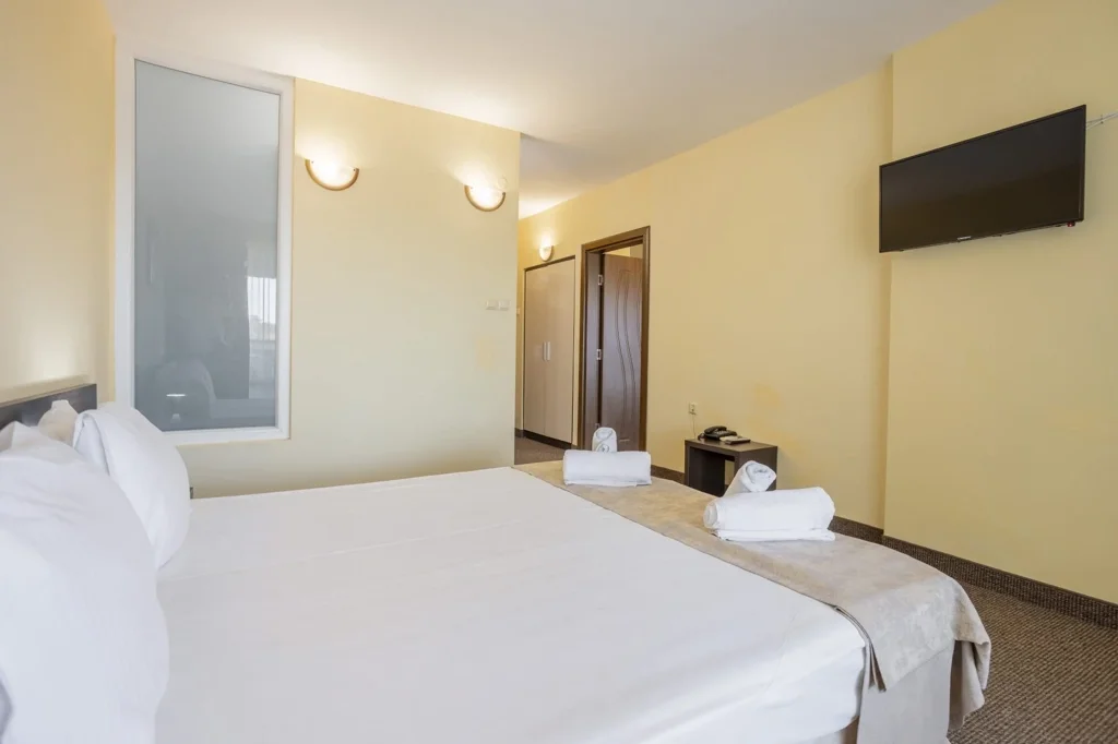 Hotelul Flagman din Sozopol este o alegere excelentă pentru cei care doresc un sejur relaxant pe coasta Mării Negre bulgare, la doar câțiva pași de apă. Clasificat la 3 stele și renovat în 2023, hotelul îmbină confortul modern cu o localizare de invidiat, oferind o experiență completă în regim All Inclusive. Ideal pentru familii cu copii, cupluri sau grupuri de prieteni, Flagman pune la dispoziție o gamă variată de cazare și facilități care fac din vacanța ta la Sozopol o amintire de neuitat.