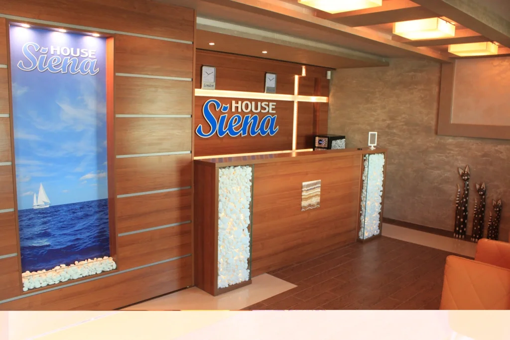 Hotelul Siena House oferă un set de facilități orientate spre confortul esențial al oaspeților. Wi-Fi gratuit este disponibil în holul hotelului, iar camerele beneficiază de conexiune wireless inclusă. Aerul condiționat funcționează atât în spațiile comune, cât și individual în fiecare cameră. La recepție se poate împrumuta fier de călcat gratuit, iar uscătorul de păr este disponibil tot la recepție, la cerere. Serviciul de spălătorie este disponibil contra cost. Pătuțul pentru bebeluși se oferă gratuit la cerere, ceea ce face hotelul prietenos pentru familiile cu copii mici. Trebuie menționat că hotelul nu dispune de parcare proprie, iar animalele de companie nu sunt acceptate. Check-in-ul se face începând cu ora 15:00, iar check-out-ul până la ora 11:00. Hotelul nu dispune de restaurant propriu, tipul de pensiune fiind RO (fără masă), însă centrul Sozopolului se află la câteva minute de mers pe jos și oferă numeroase opțiuni de restaurante și cafenele.
