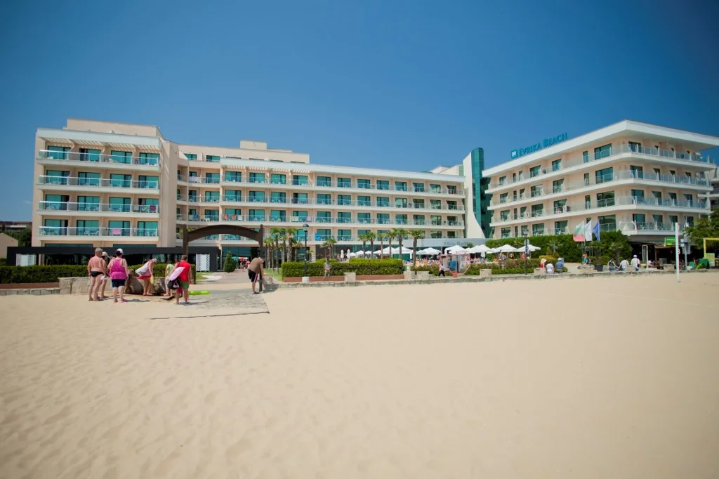 Așezat direct pe o plajă privată cu nisip fin, DIT Evrika Beach Club Hotel este una dintre cele mai complete destinații de vacanță din Sunny Beach, Bulgaria. Hotelul de 4 stele impresionează prin dimensiunile sale generoase – 633 de camere distribuite în patru clădiri – și printr-un pachet all inclusive bogat, care acoperă nevoile tuturor categoriilor de turiști. Fie că planificați un sejur în familie cu copii, o escapadă romantică în doi sau o vacanță alături de prieteni, DIT Evrika Beach Club Hotel oferă cadrul perfect pentru relaxare totală la malul Mării Negre.