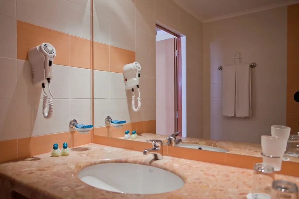 Camera Dublă Premium – 24–26 m², disponibilă cu vedere standard, vedere la piscină sau vedere la mare, cu capacitate de până la 3 persoane. Cazare în Blocul D, cu beneficii exclusive incluse: acces la restaurantul Premium, piscina de relaxare rezervată oaspeților Premium, Wi-Fi de calitate superioară, articole de toaletă premium și facilități pentru prepararea cafelei și ceaiului. Aer condiționat central, TV cu ecran plat, mini-frigider, seif gratuit, baie cu duș sau cadă, uscător de păr.