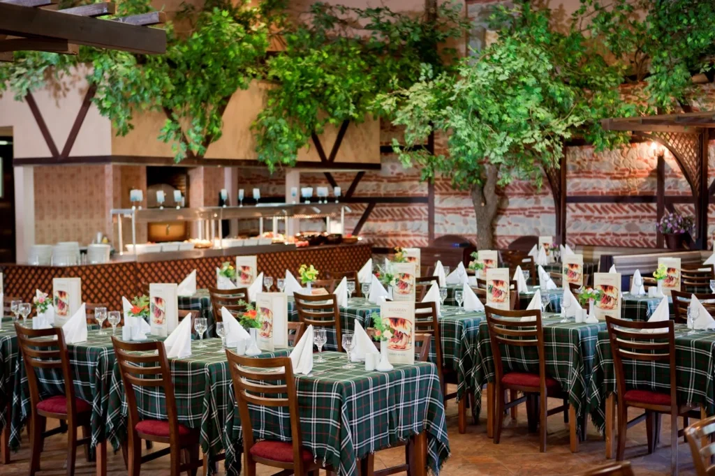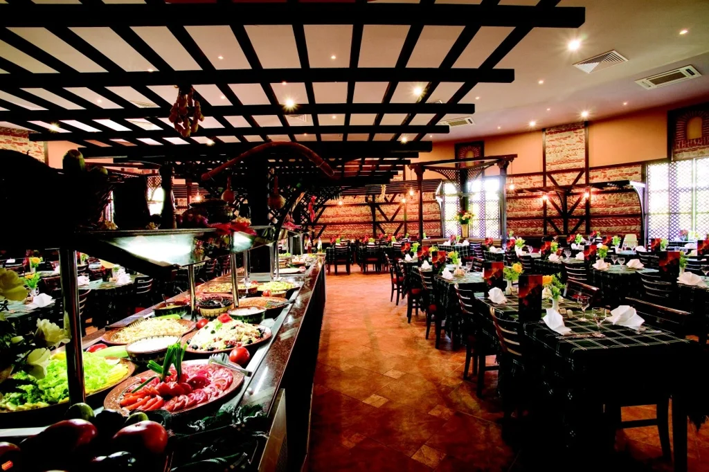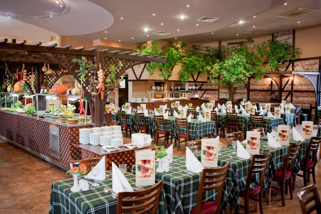 Pachetul All Inclusive al hotelului este unul dintre cele mai generoase din Sunny Beach. Mic dejunul se servește la restaurantul principal între orele 07:30–10:00, urmat de mic dejun continental la zona de gustări între 10:00–12:00. Prânzul (bufet cu salate, supe și deserturi) este disponibil la restaurantul principal între 12:30–14:30, iar Snack Bar-ul funcționează între 12:00–17:00 cu sandvișuri, pizza, produse de patiserie, fructe și înghețată. Cina la restaurantul principal se servește în două ture: 18:00–19:30 și 20:00–21:30, cu bufet variat și bucătărie deschisă. Oaspeților cu sejur de minimum 5 nopți li se oferă câte o cină gratuită la fiecare dintre cele 3 restaurante à la carte tematice: mexican, asiatic și italian (program 18:00–21:30, cu rezervare în avans, cod vestimentar elegant obligatoriu). Băuturile alcoolice și nealcoolice locale, inclusiv cocktailurile, sunt incluse și se servesc la Bar în Hol (10:00–23:00), Bar Ploios (18:00–24:00), Salon Bar (18:00–24:00), Bar la Piscină (10:00–18:00) și Bar pe Plajă (10:00–17:00). Oaspeții Evrika Premium Level All Inclusive beneficiază suplimentar de mic dejun prelungit (07:30–10:30) și prânz și cină la restaurantul Premium exclusiv, cu preparate de calitate superioară, fructe și deserturi rafinate.