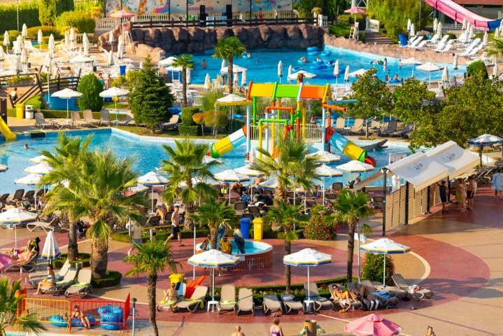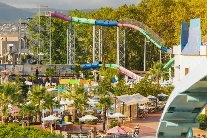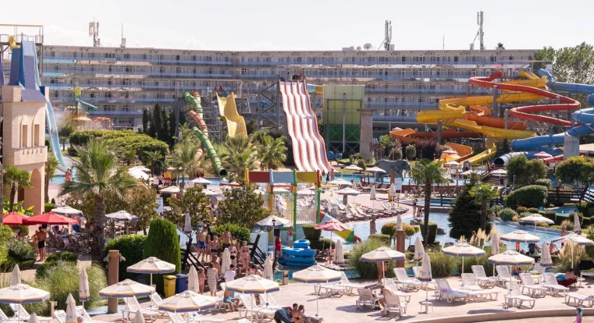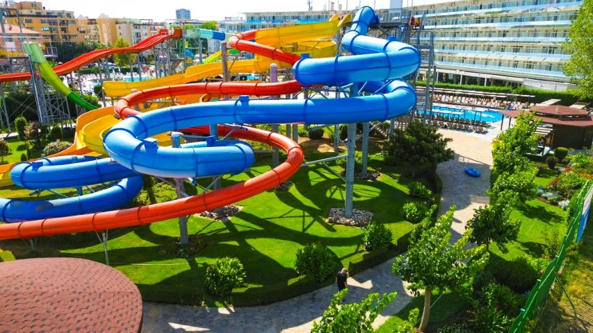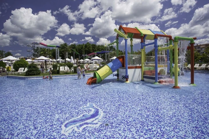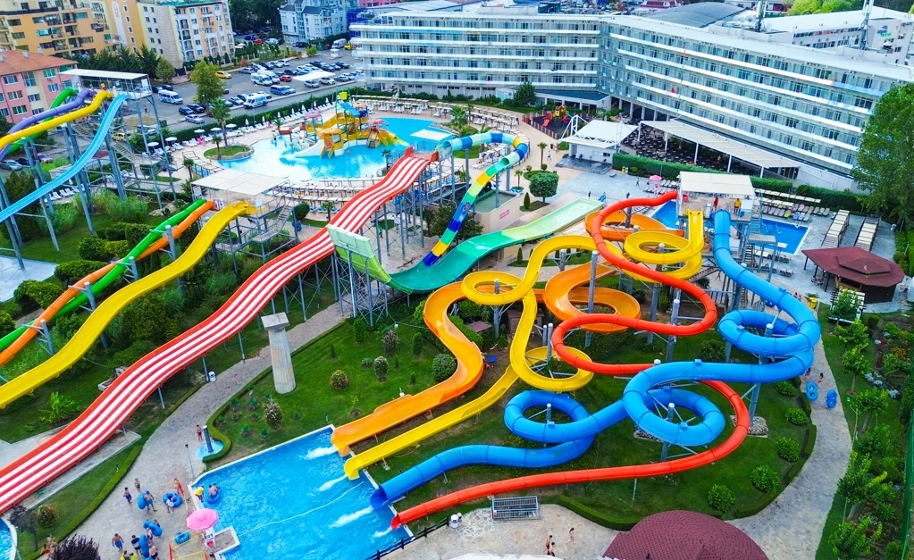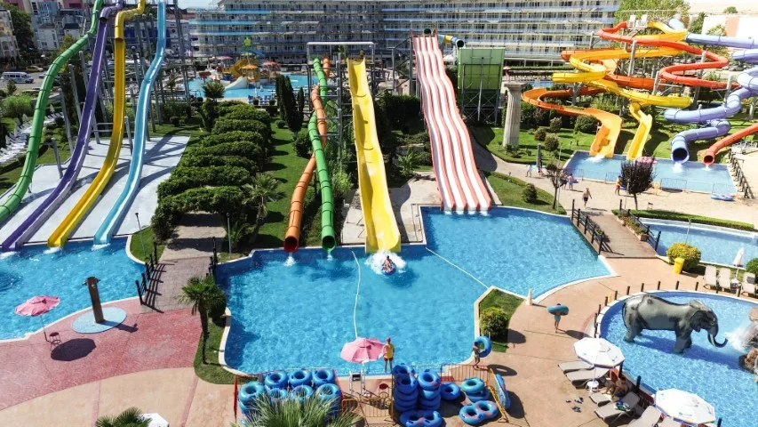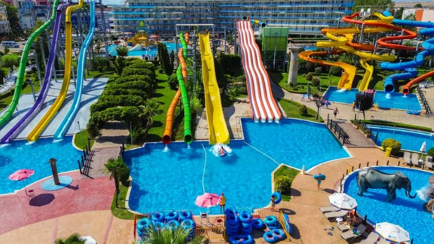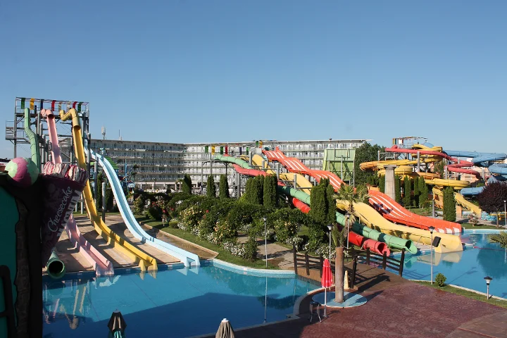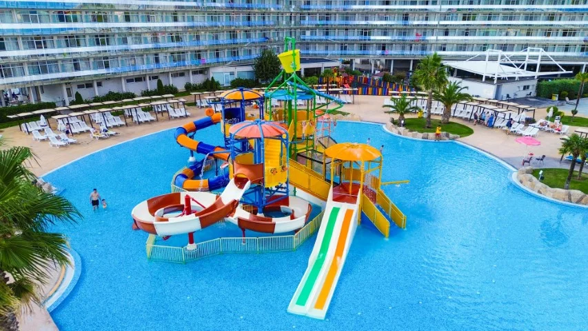 Aqua Nevis Club Hotel & Action Aquapark este alegerea ideală pentru familiile cu copii care doresc o vacanță all inclusive fără griji în Bulgaria, cu divertisment acvatic nelimitat inclus în preț. Principalele puncte forte sunt parcul acvatic cu 35+ atracții inclus gratuit, camerele spațioase renovate în 2020 și varietatea de restaurante și baruri. Un aspect de luat în considerare este distanța față de plajă (3 km), ceea ce înseamnă că excursiile la mare necesită planificare suplimentară. Pentru turiștii cărora le place să petreacă ziua la piscine și tobogane, această distanță devine irelevantă – complexul oferă tot ce este nevoie pentru un sejur reușit pe litoralul bulgăresc.